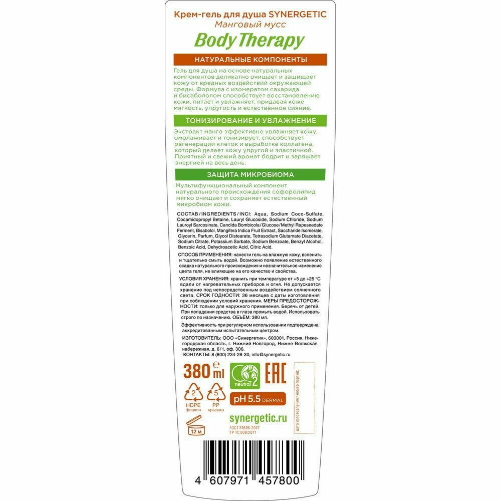 Крем-гель для душа SYNERGETIC "Манговый мусс" BODY THERAPY, 380 мл
