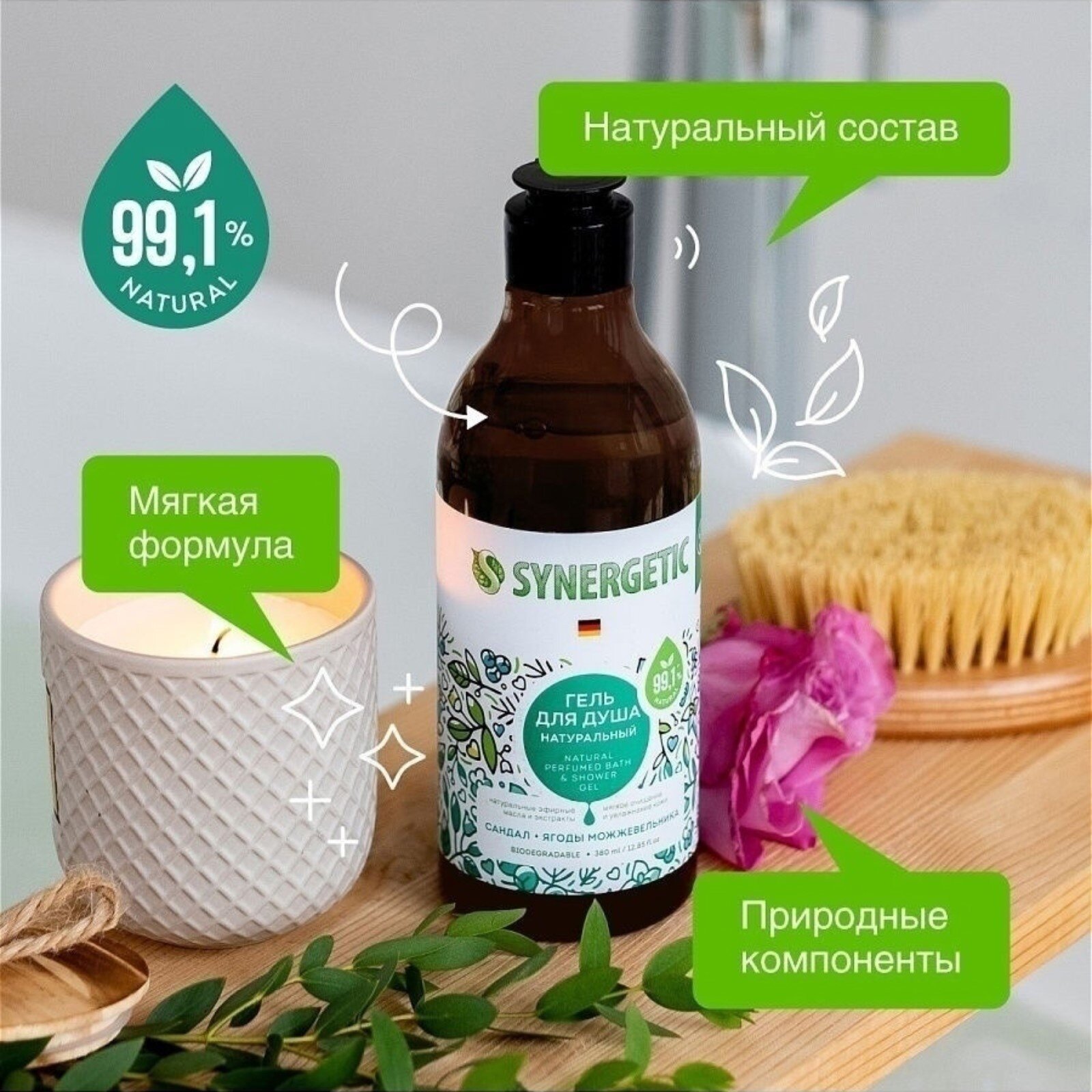 СохранитьSynergetic, Гель для душа "Сандал и ягоды можжевельника", 380мл интересное: