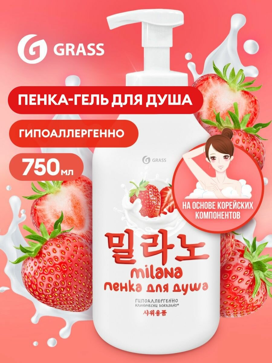 GRASS 125464 гель-пенка для душа! 'Milana с экстрактом клубники и молочными протеинами' 750мл\