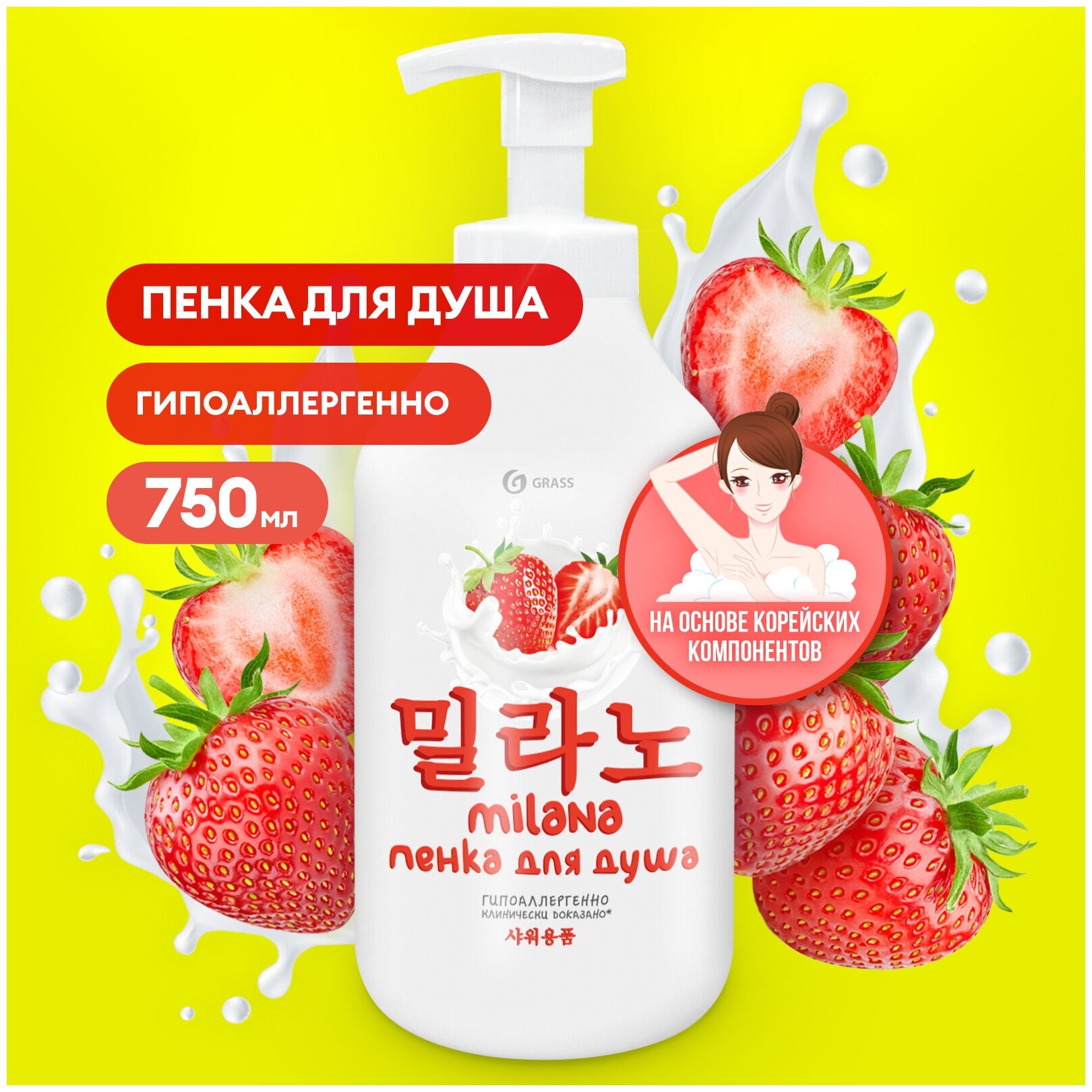 Купить Пенка для душа Grass Milana с экстрактом клубники и молочными протеинами 0,75 л
