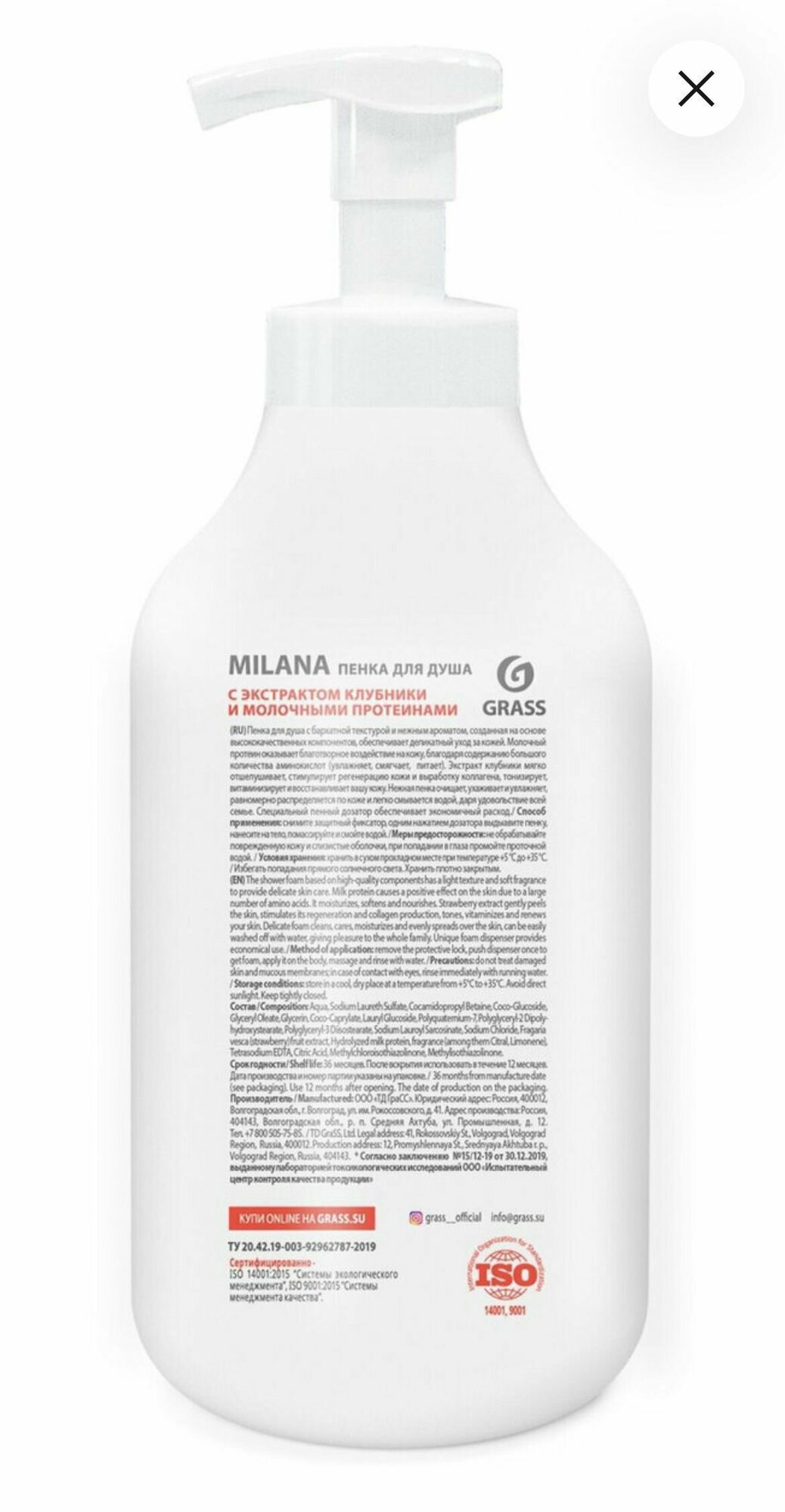 Пенка для душа Grass Milana с экстрактом клубники и молочными протеинами 0,75 л интересное: