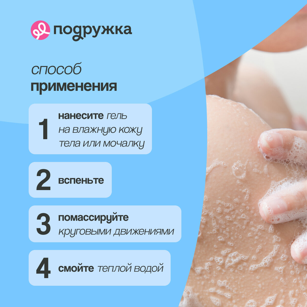 | Способ применения | нанесите гель на влажную кожу тела или мочалку, вспеньте, помассируйте круговыми движениями и смойте тёплой водой |