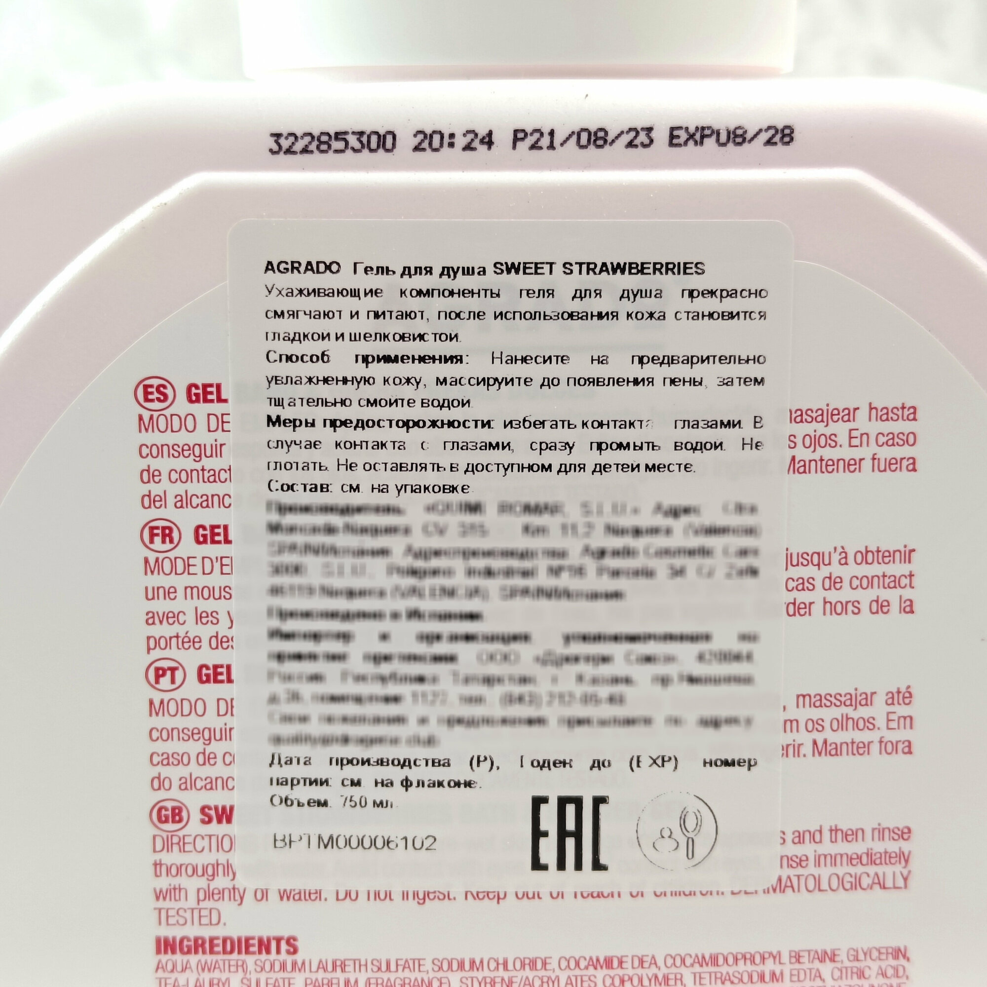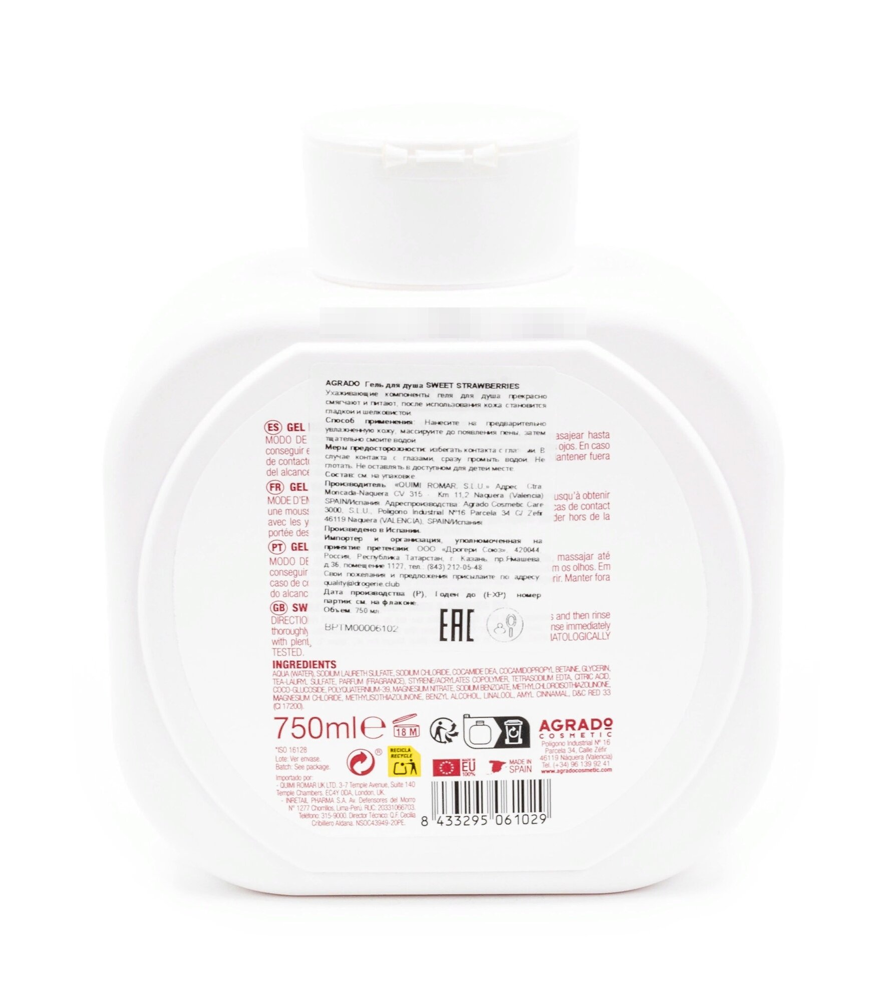 agrado_гель д/душа 750 мл_sweet strawberry 154000005 . интересное: