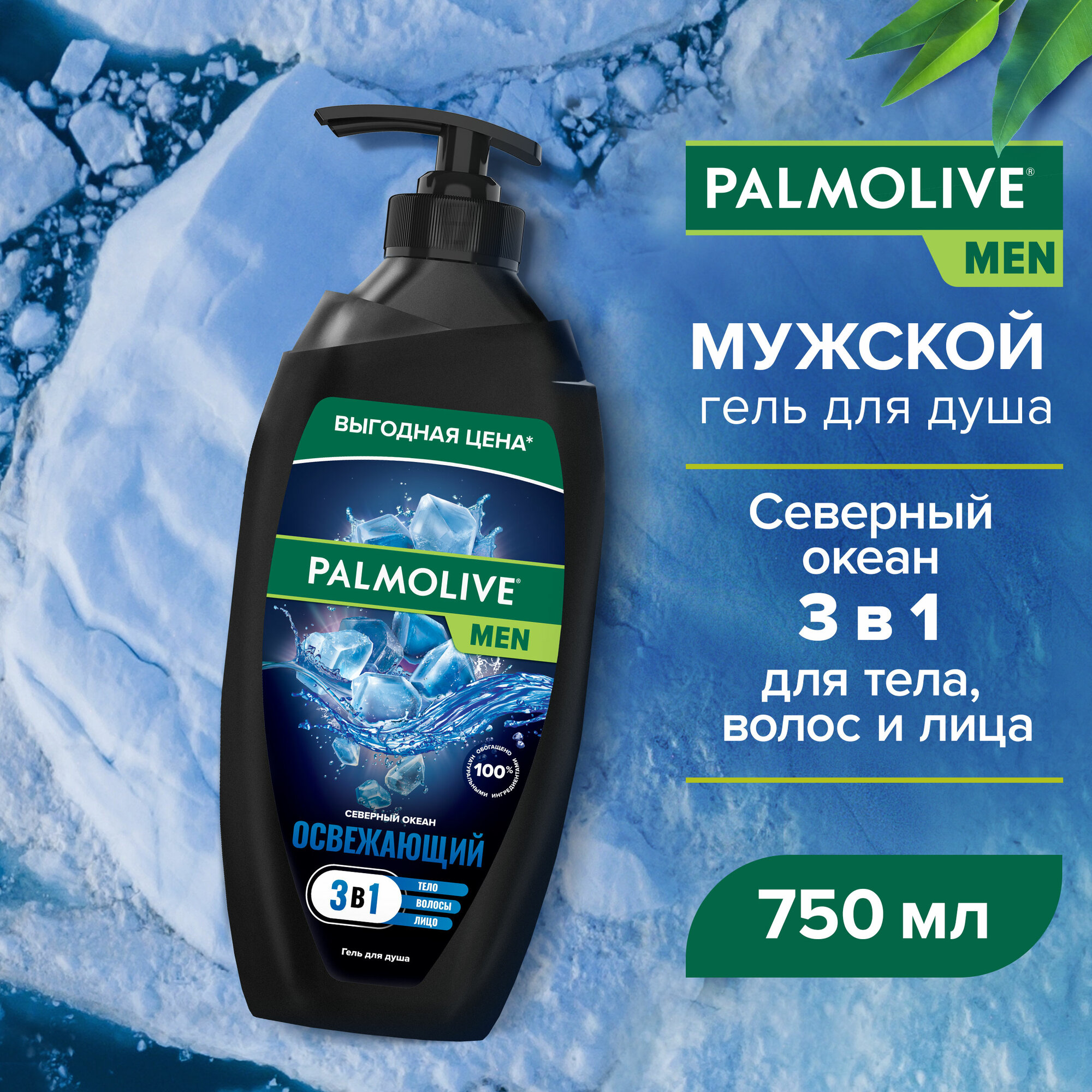 Купить PALMOLIVE MEN Освежающий Северный океан мужской гель для душа 3 в 1 для тела, лица и волос, 750 мл
