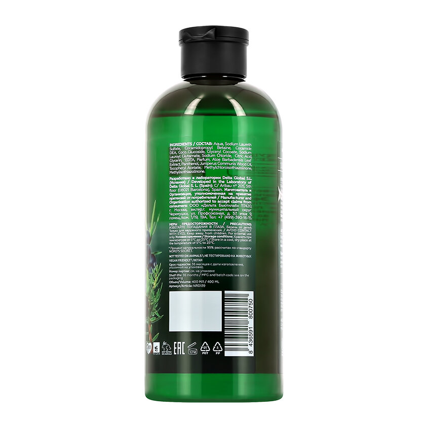NORDS SECRET Гель-масло для душа "Черный можжевельник" тонизирующий, 400 мл