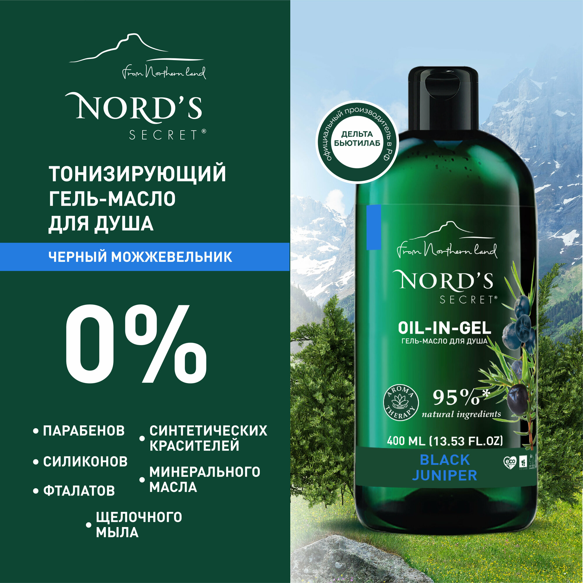 Купить NORDS SECRET Тонизирующий гель масло для душа "Чёрный можжевельник", 400 мл