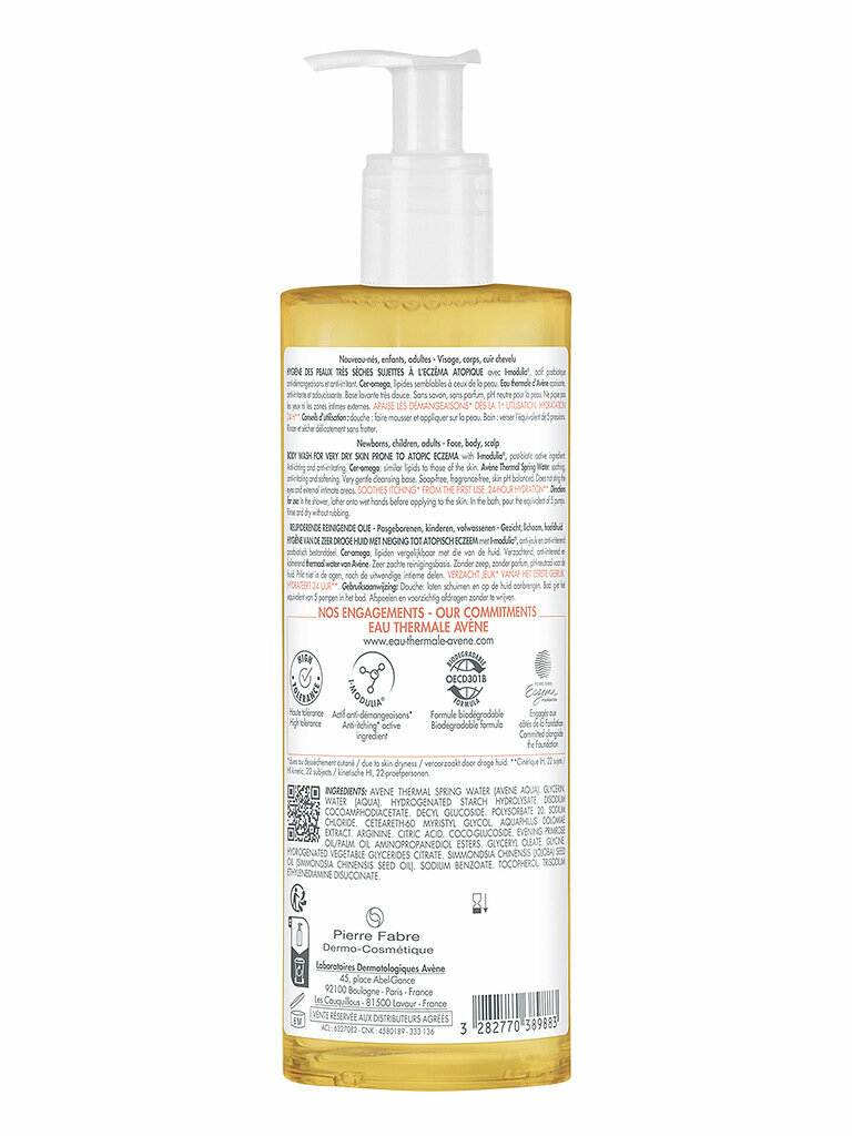 | Состав | I-modulia - инновационный биотехнологический компонент - снимает зуд, воспаление, оказывает антибактериальное действие;Cer-omega - смягчает кожу, восстанавливает гидролипидный баланс;Термальная вода Avene - успокаивает кожу, снижает раздражение;Не содержит отдушек, эмульгаторов, спирта и консервантов;Стерильная формула. |