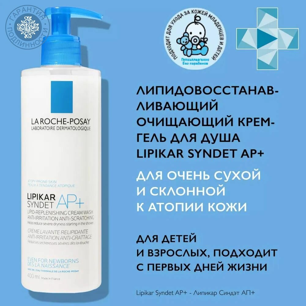 СохранитьКрем-гель для лица и тела очищающий липидовосстанавливающий Lipikar Syndet AP+ La Roche Posay/Ля рош позе 400мл интересное: