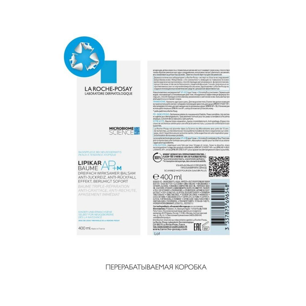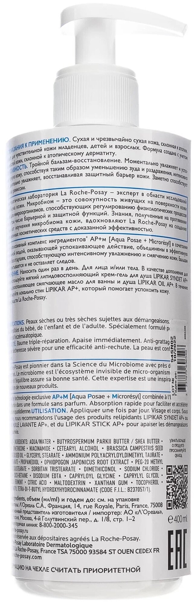 LIPIKAR AP+M Липидовосполняющий бальзам для лица и тела младенцев, детей и взрослых 400 мл, LA ROCHE POSAY