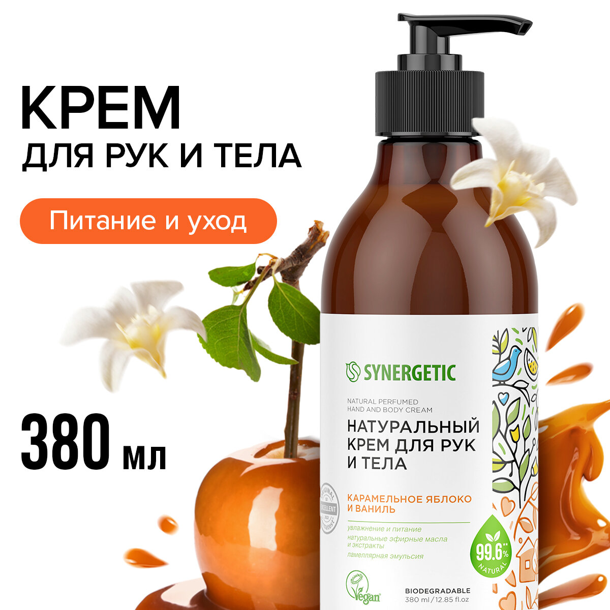Купить Synergetic крем для рук и тела Карамельное яблоко и ваниль, 380 мл, 380 г