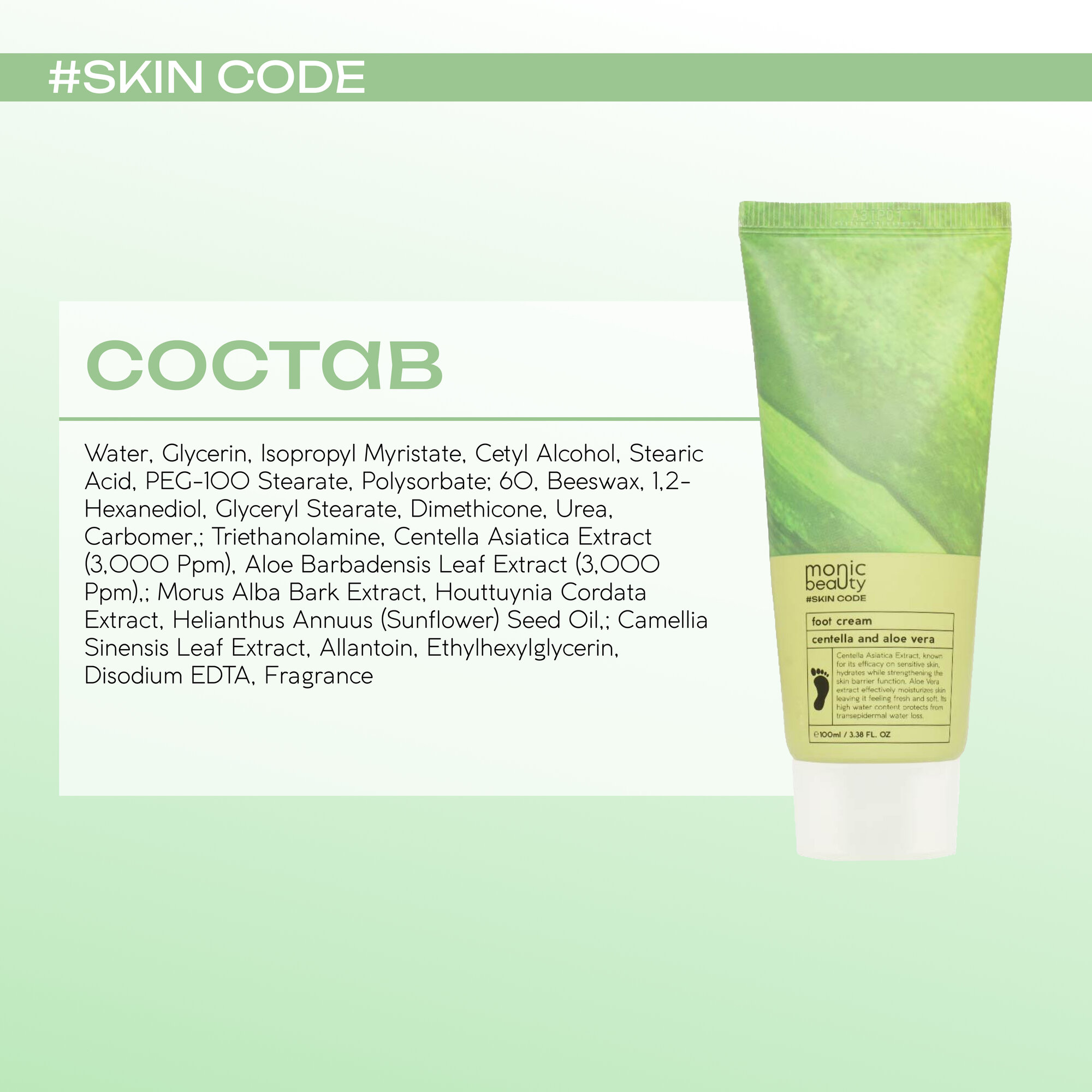 Купить Крем для ног Monic Beauty Skin Code с центеллой и алоэ вера, 100 мл