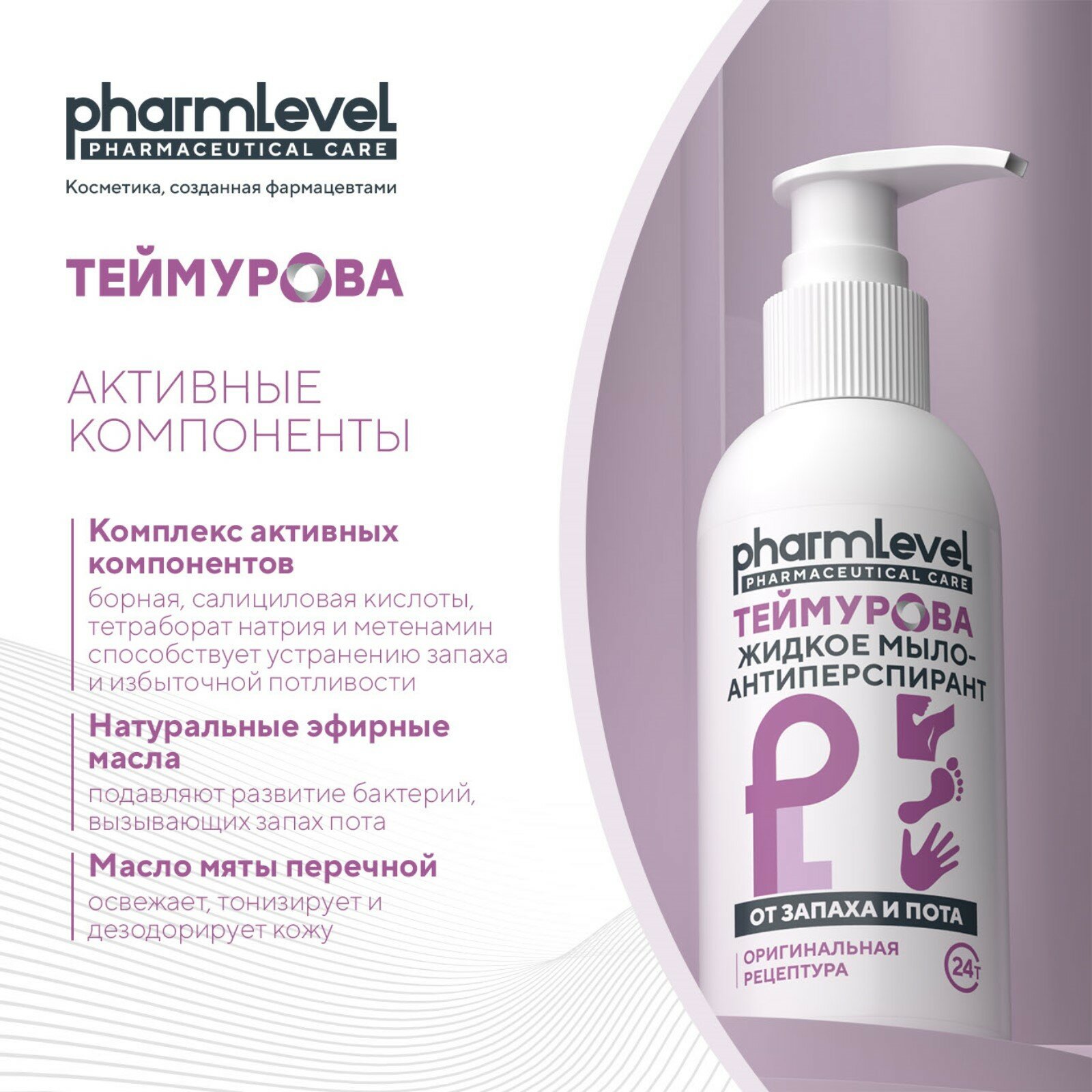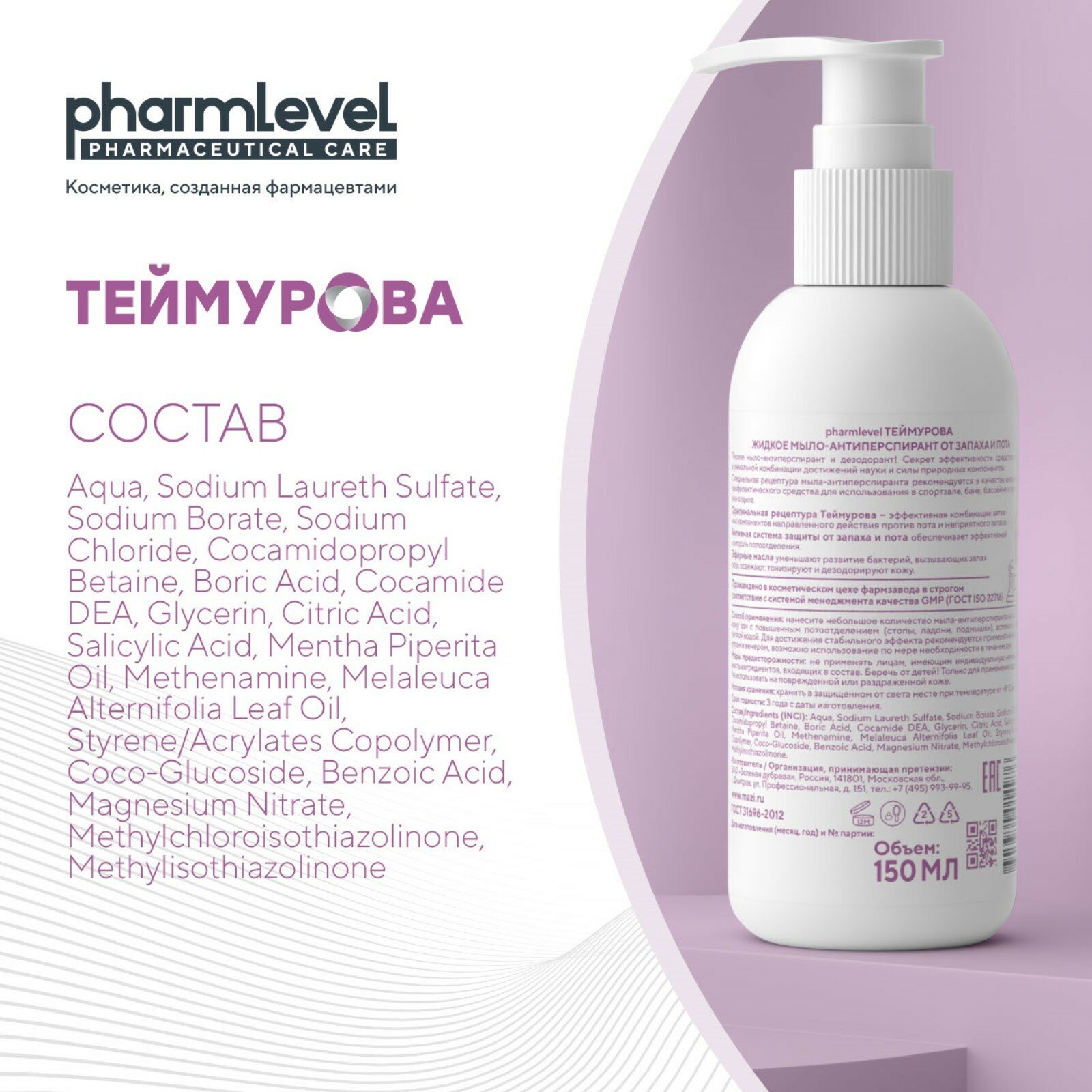 Мыло жидкое Pharmlevel, теймурова, 150 мл, антиперспирант, от запаха и пота интересное: