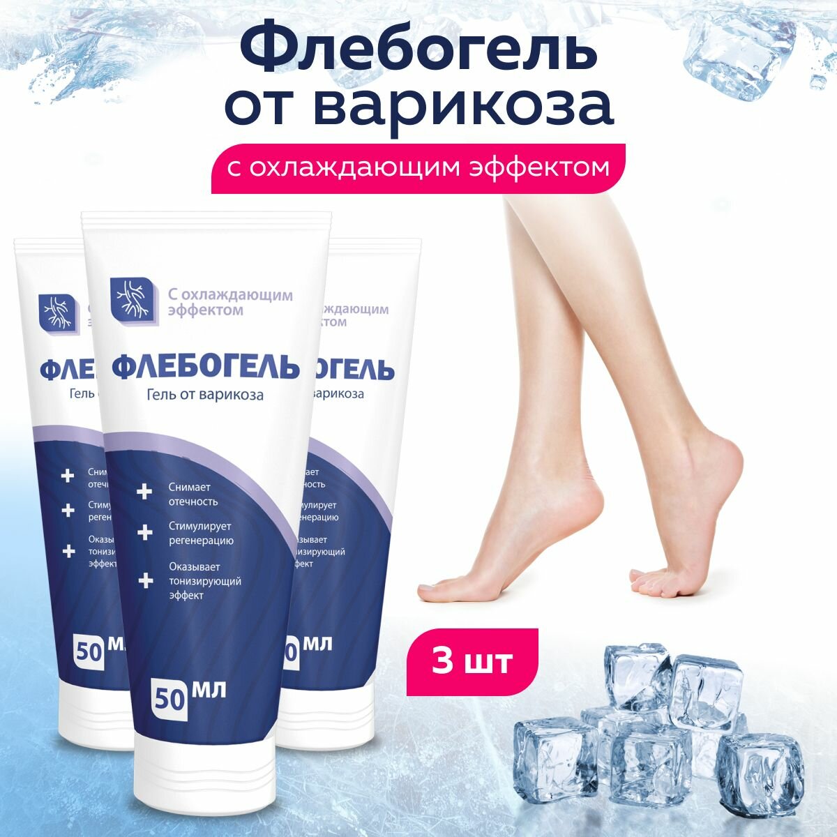 Купить Крем для ног Флебогель, противовоспалительный, регенерирующий, 3 тубы