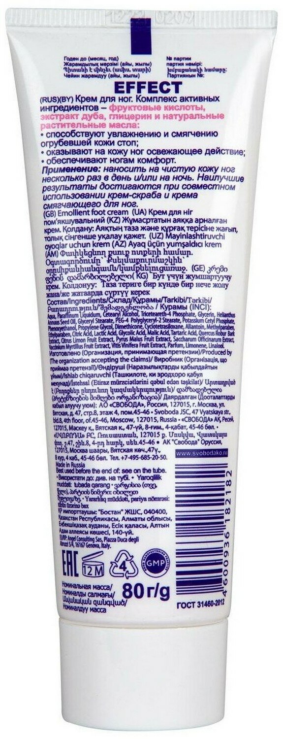 Свобода Крем Эффект для ног, Смягчающий, 80 гр, 2 шт/ интересное: