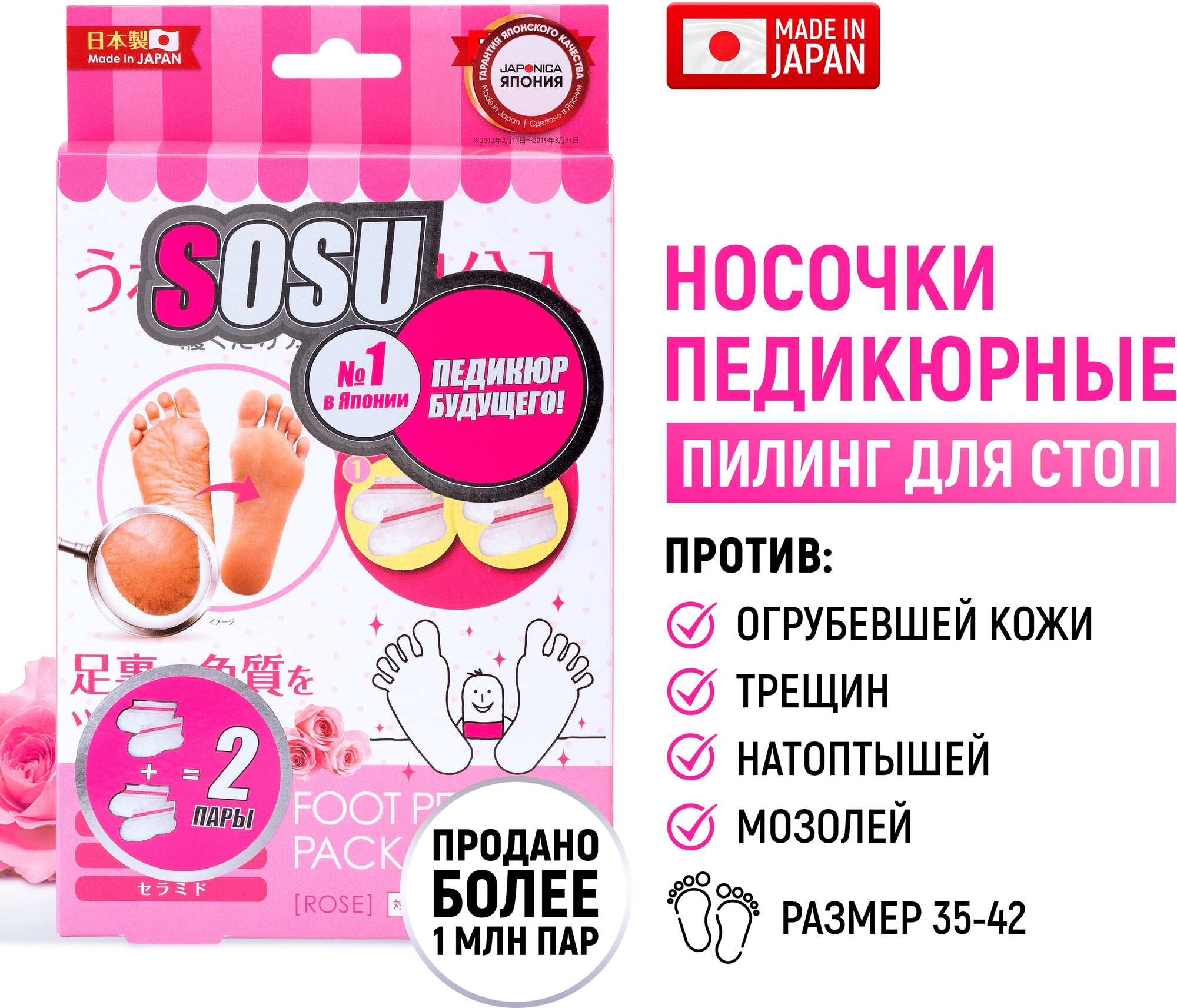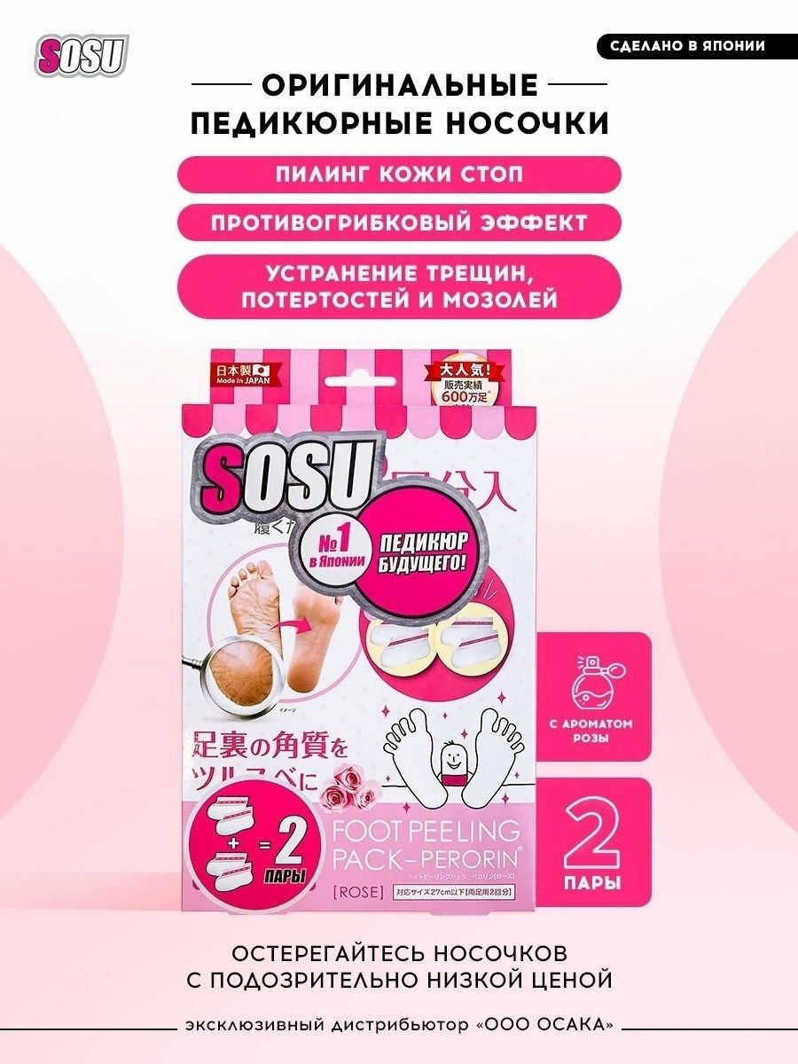 SOSU Носочки для педикюра с ароматом розы, для гладких пяток, от натоптышей и трещин, 2 пары