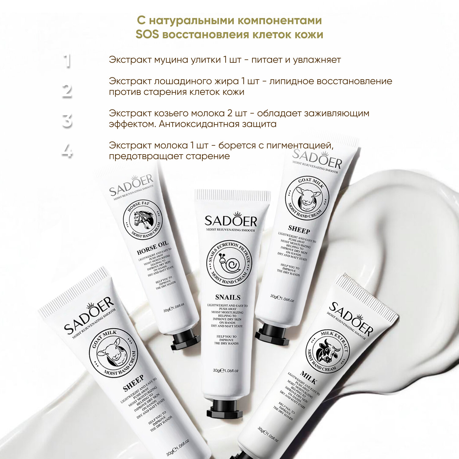 Подтягивающий и выравнивающий крем для рук Sadoer с аминокислотами молока 30 гр. х 5 шт.