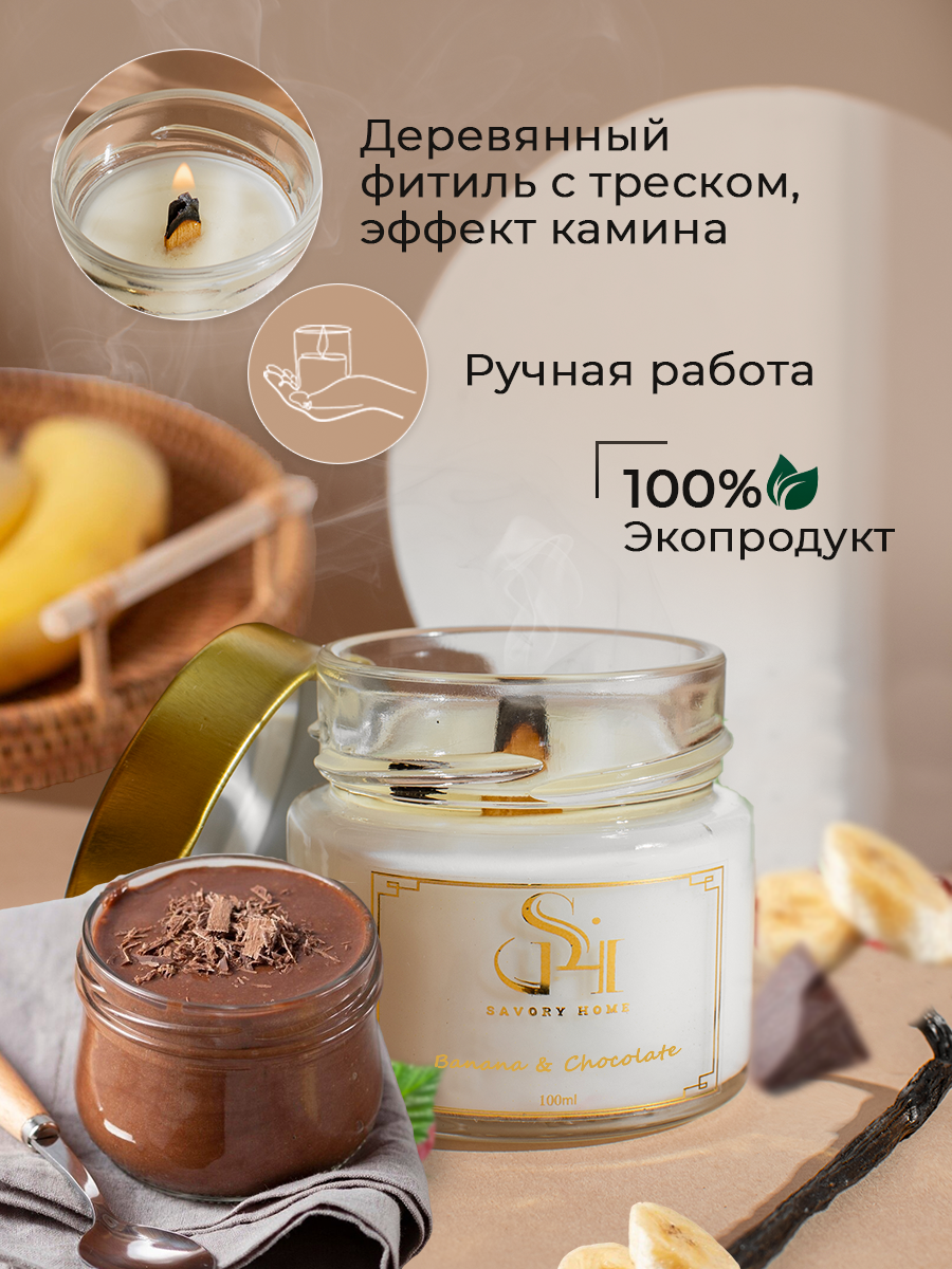 СохранитьСвеча ароматическая "Банан и горячий шоколад" 100мл, Savory Home интересное: