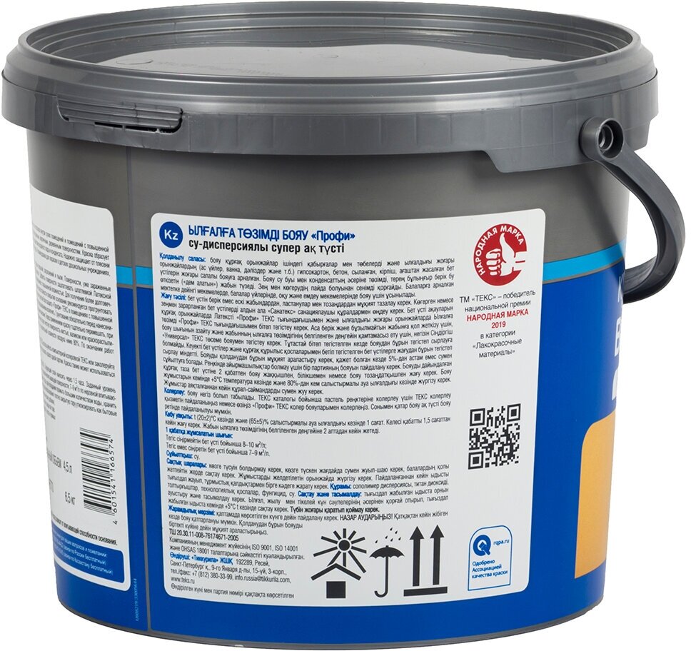 Текс Краска в/д влагостойкая класс профи супербелая (4,5л=6,5кг)