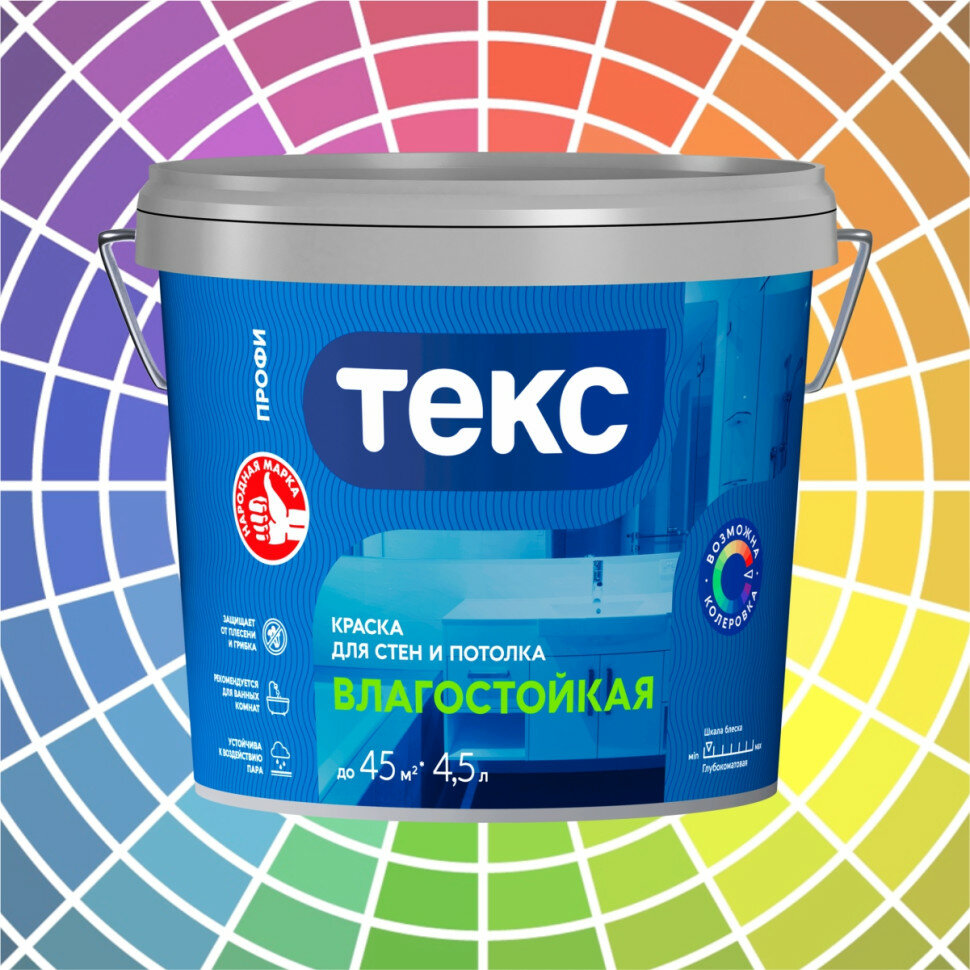 Краска для стен и потолков Текс Профи, влагостойкая, база A, белая, 4,5 л