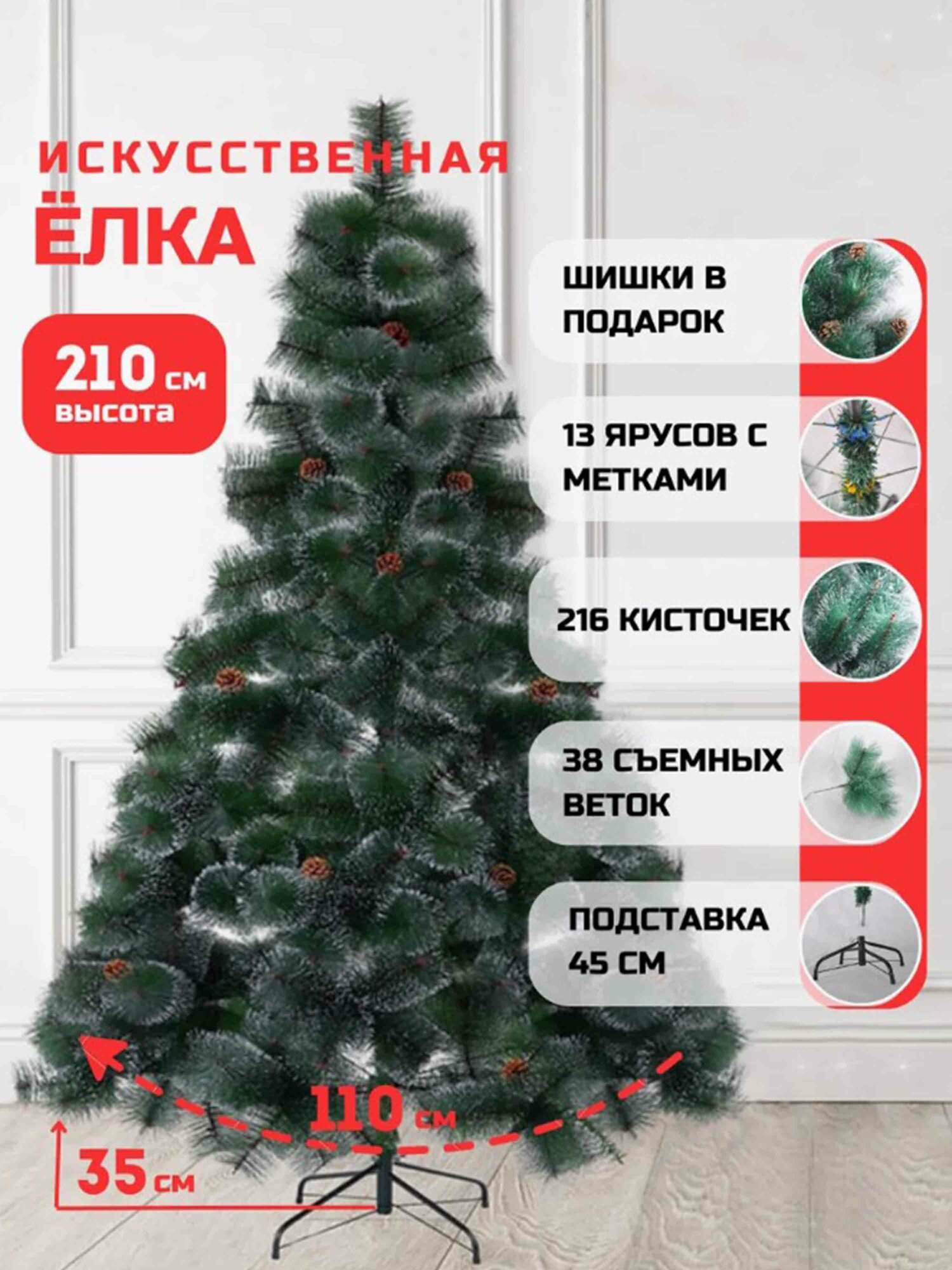 СохранитьИскусственная Елка , Ель искусственная/ ель с шишками и инеем/ новогодняя с шишками и инеем, Из ПВХ, 210 см интересное: