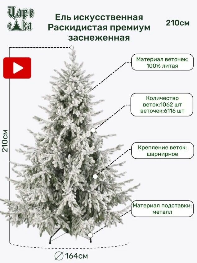 СохранитьЕлка искусственная новогодняя Царь Елка Раскидистая премиум заснеженная 210 см, литая 100%, напольная, высокая и широкая интересное: