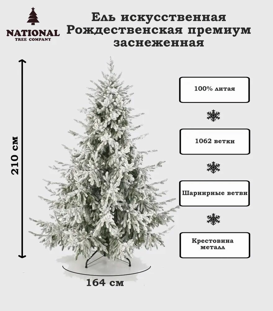 Купить Литая елка искусственная новогодняя National Tree Company Рождественская премиум заснеженная 210 см, хвоя белая, разборная ель