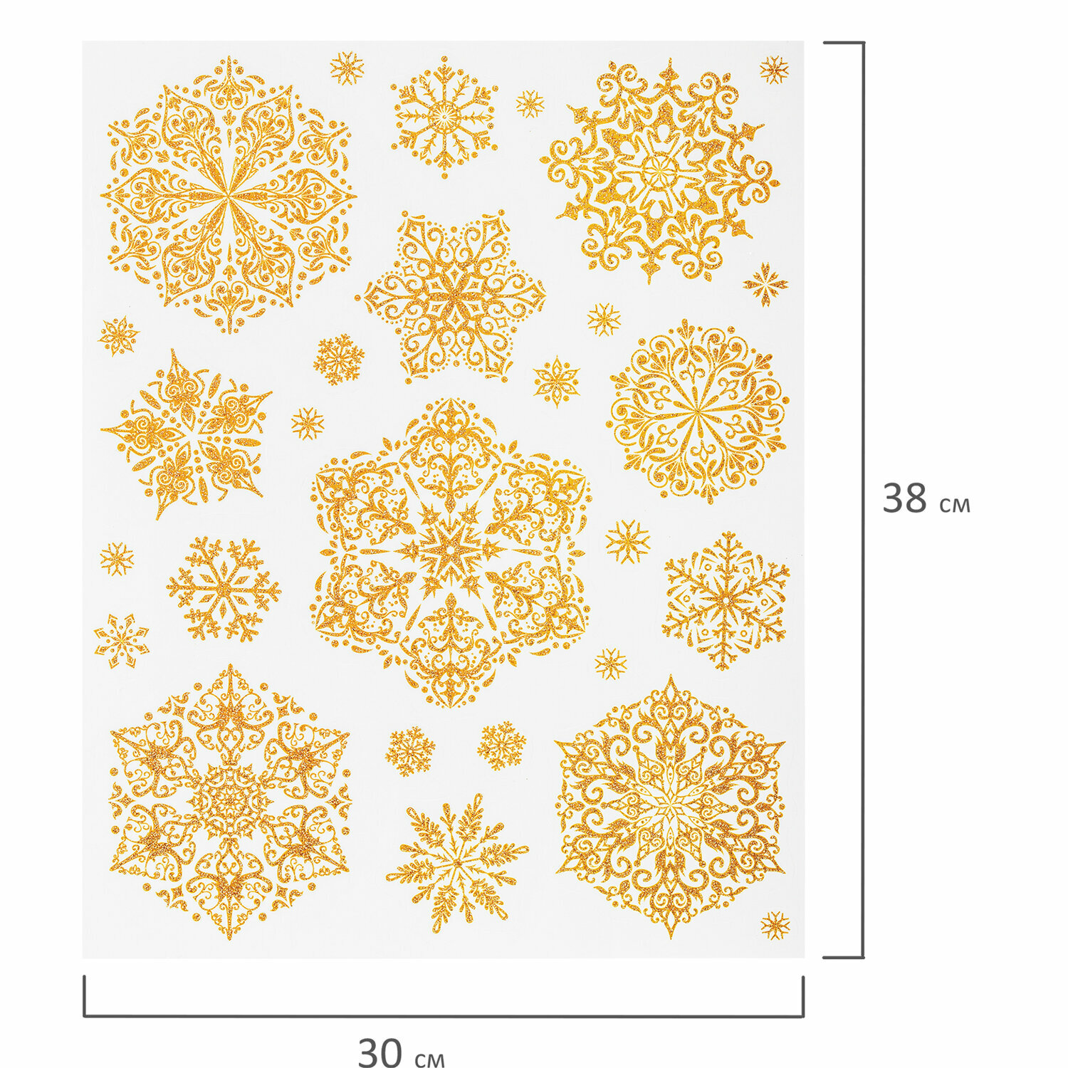 Наклейка для окон двусторонняя многоразовая 30х38 см, "Снежинки", фольга, золото, золотая сказка, 591927