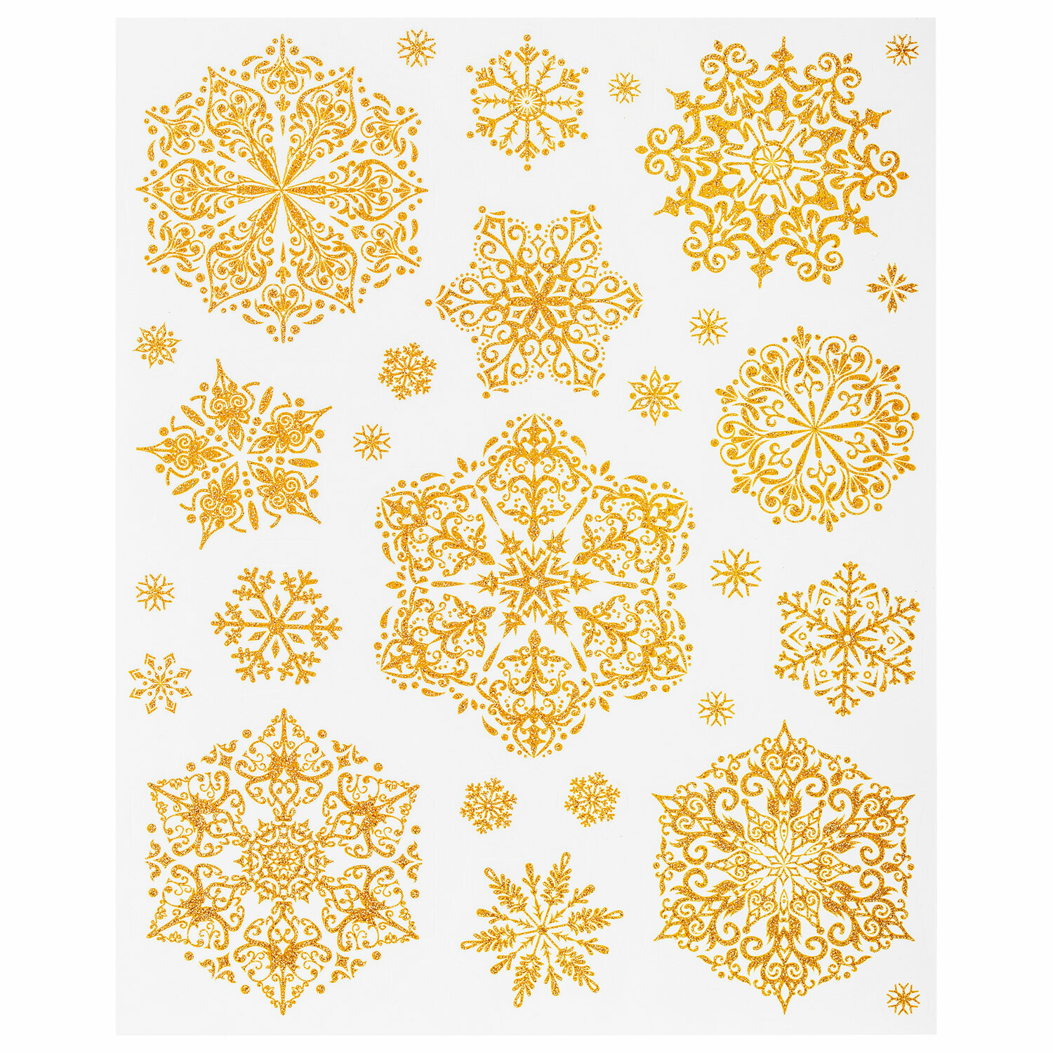Купить Наклейка для окон двусторонняя многоразовая 30*38 см "Снежинки" глиттер, золото золотая сказка, 591190