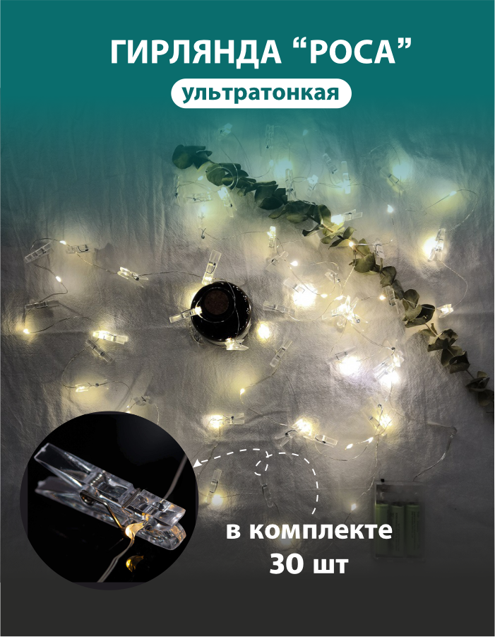 Гирлянда роса светодиодная с прищепками на батарейках интересное: