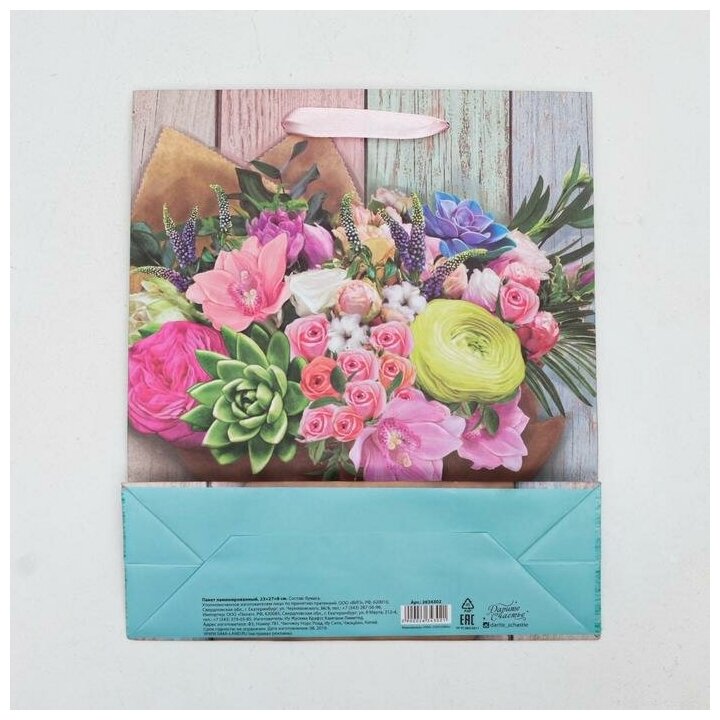 Пакет подарочный «Цветочный», 23 × 27 × 11,5 см