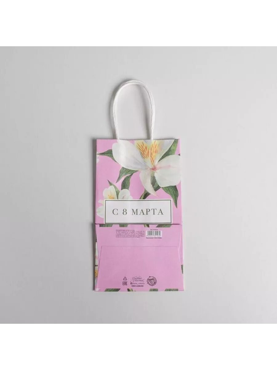 Купить Пакет подарочный крафт С 8 марта, 12 × 21 × 9 см