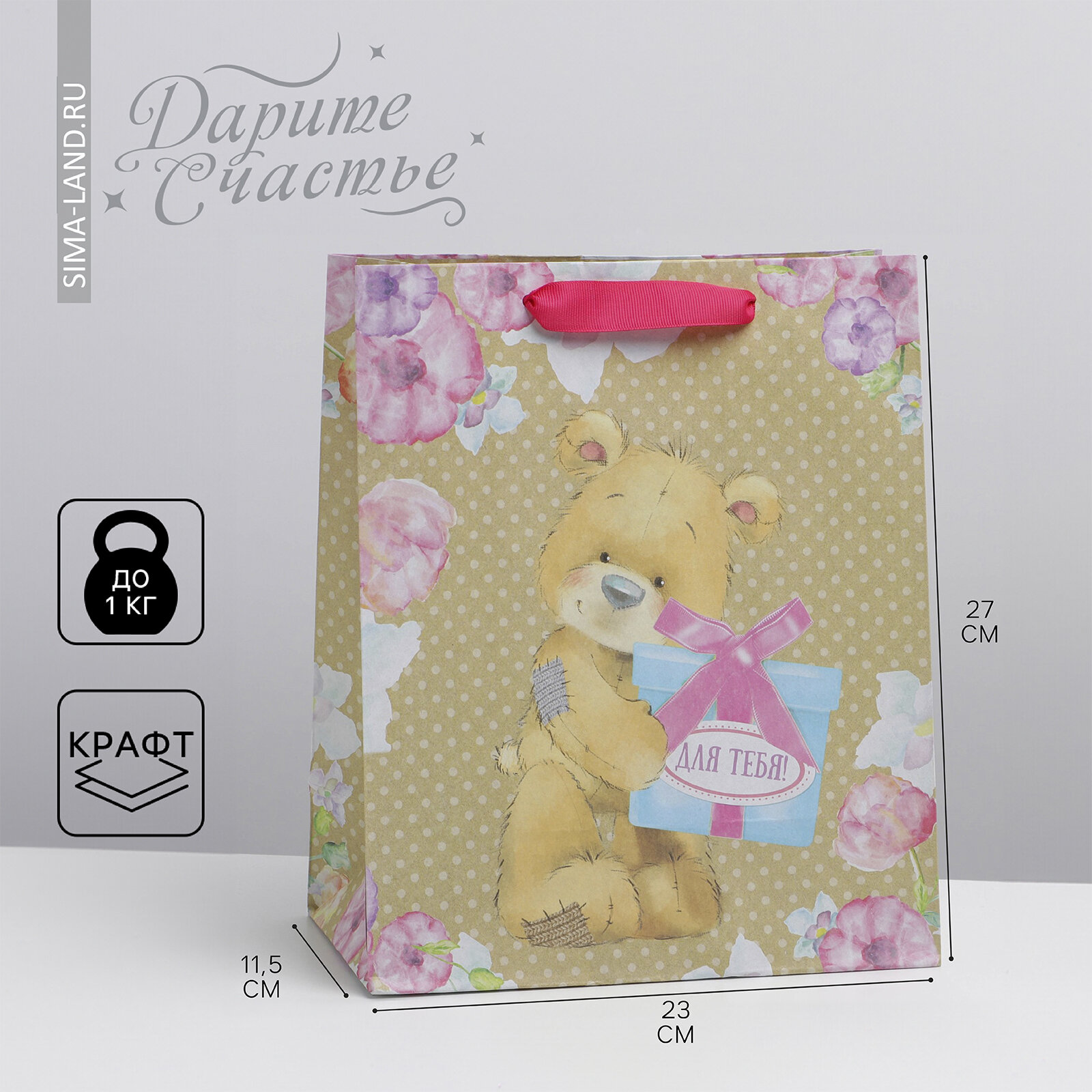 Купить Пакет подарочный Дарите Счастье - Для тебя, крафтовый, вертикальный, 23 х 27 х 11.5 см, 1 шт.