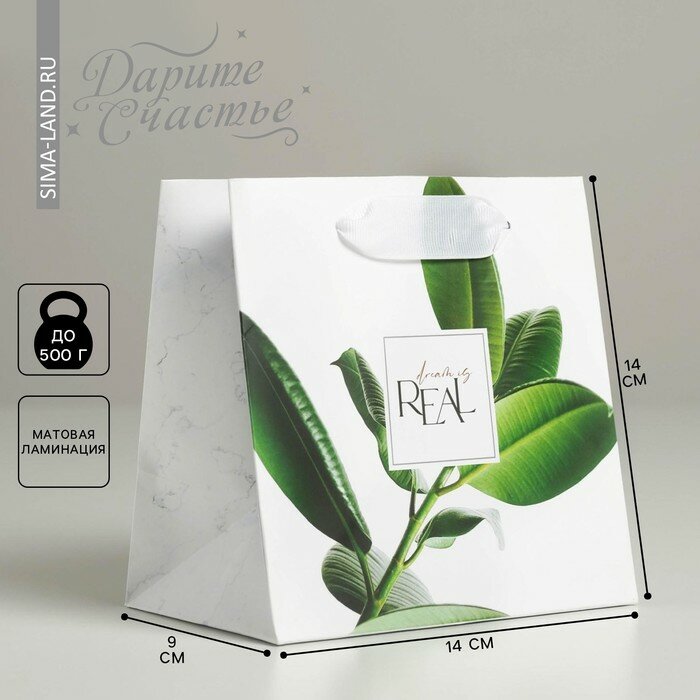 Пакет подарочный "Dream", размер 14 х 14 х 9 см, коричневый, для упаковки подарка