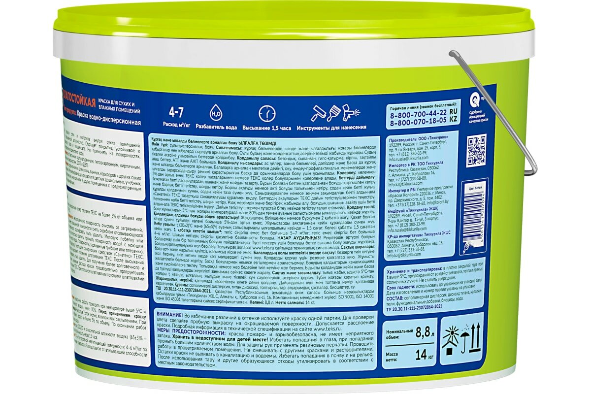 Краска влагостойкая Текс Универсал, белая, матовая (7кг)