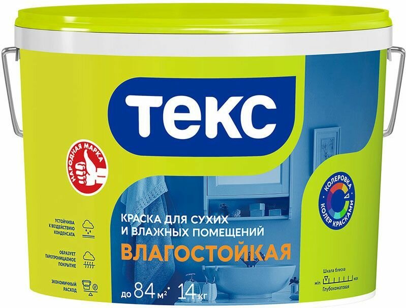 Влагостойкая краска текс универсал для стен и потолков 14 кг