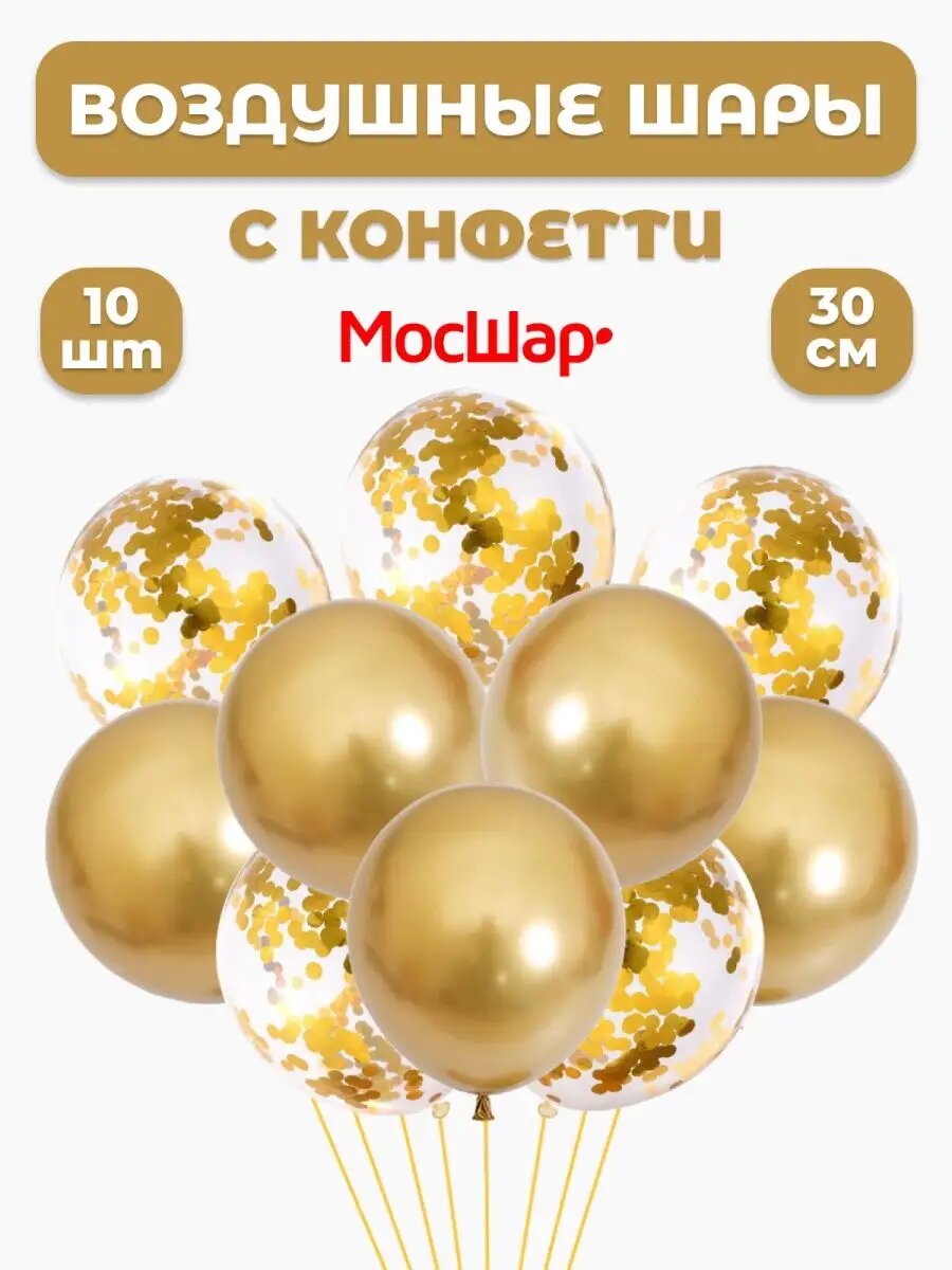 Купить Набор воздушных шаров с конфетти золото - 10шт 30см
