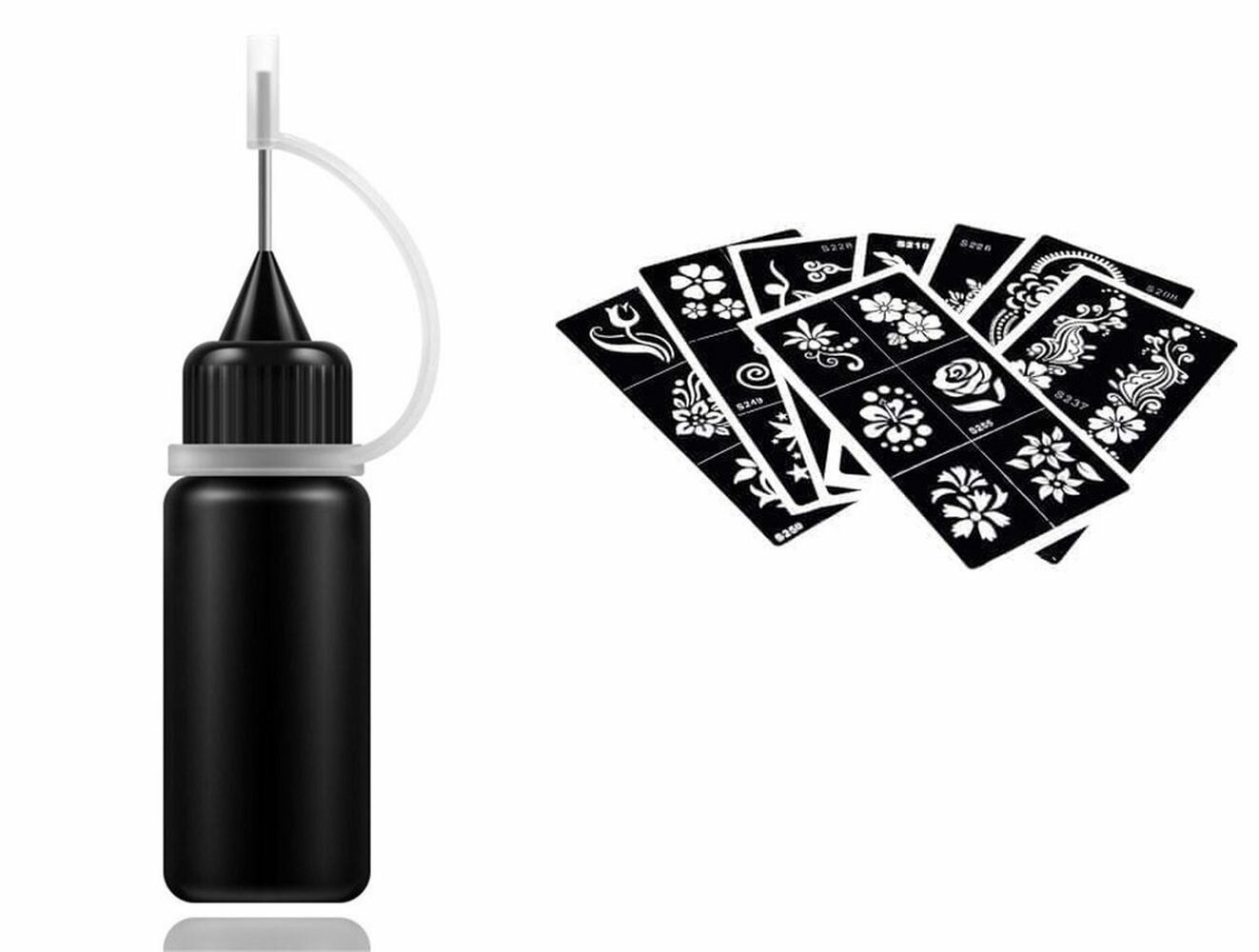 Купить Гель для временных тату и мехенди, черный, 10 мл + 5 трафаретов