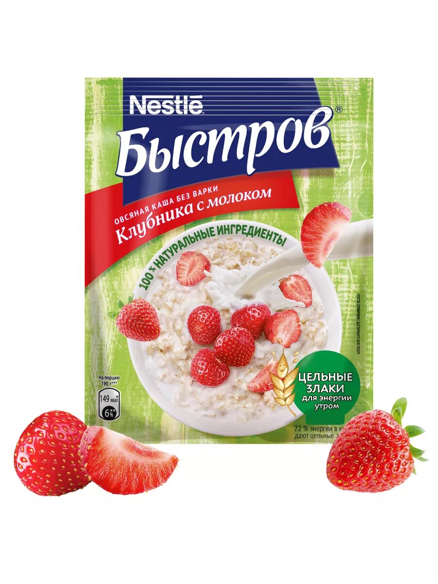 Купить Каша овсяная клубника с молоком. 40г - 17 пакетиков