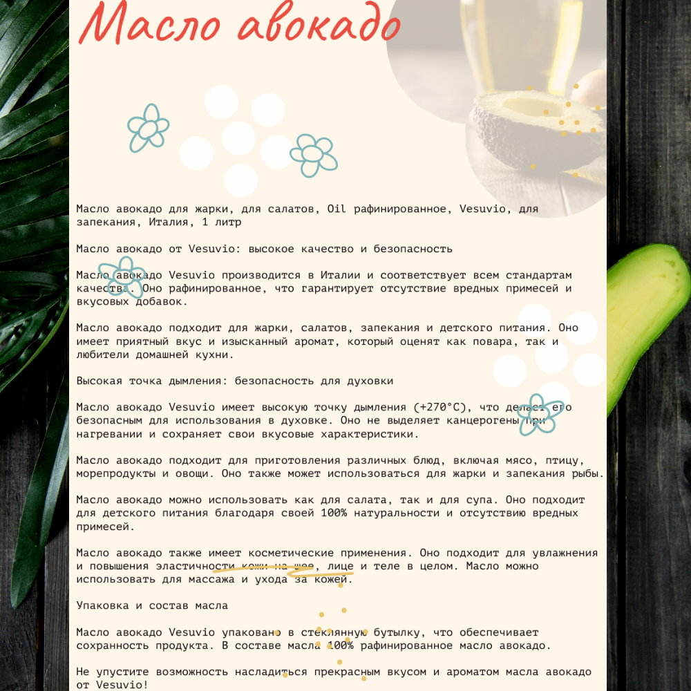 СохранитьМасло Авокадо 1л, масло Авокадо для жарки, запекания, для салатов, Италия интересное: