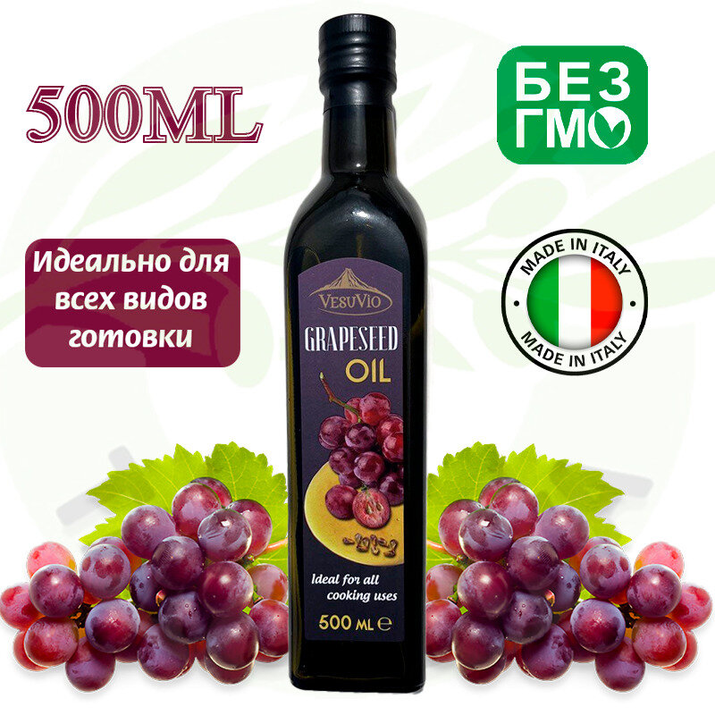 Купить Масло виноградной косточки, рафинированное. VesuVio, Италия, для жарки, для выпечки, для заправки салатов, 500 мл.