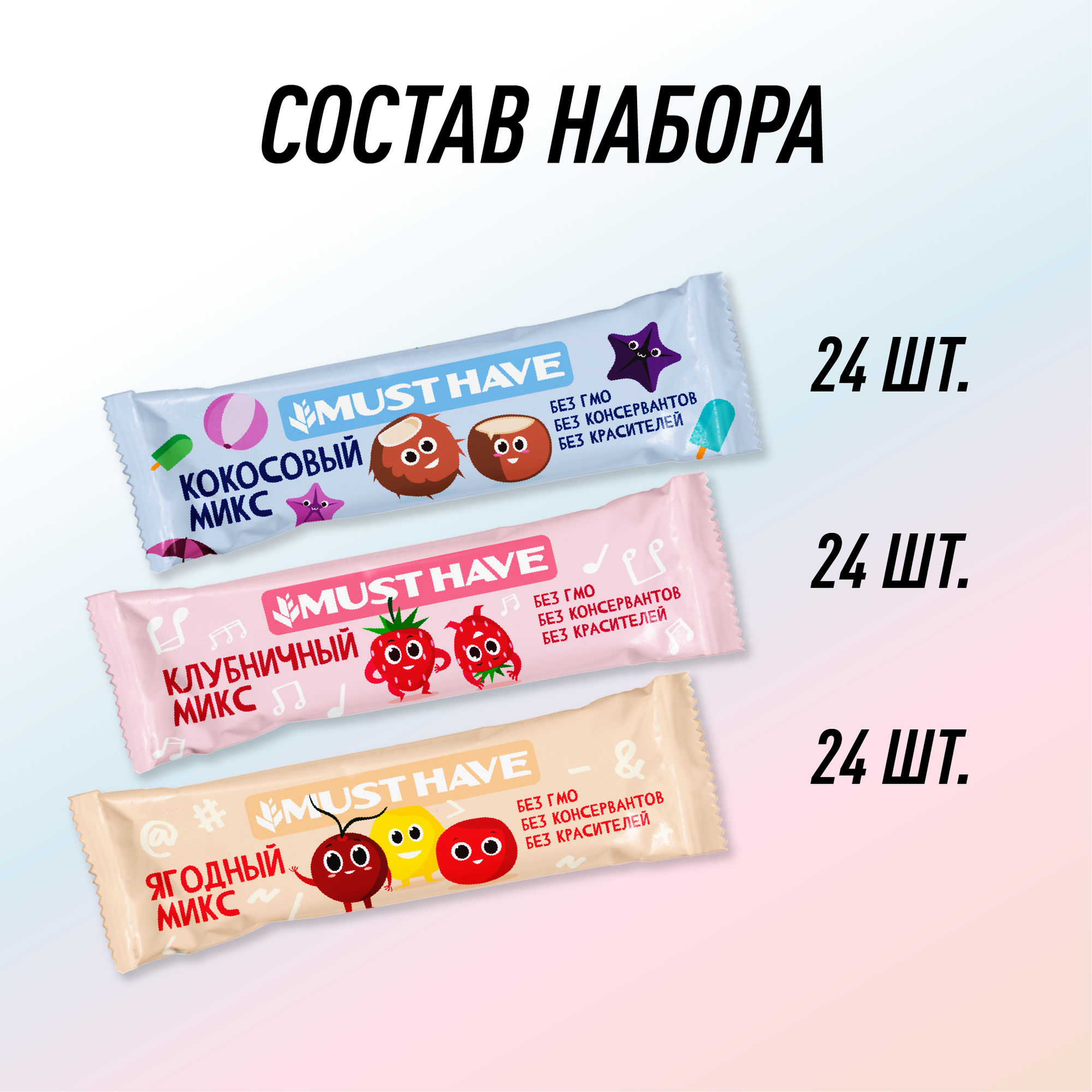 Батончики мюсли MUST HAVE полезный перекус «Клубничный микс», 72 шт по 25г