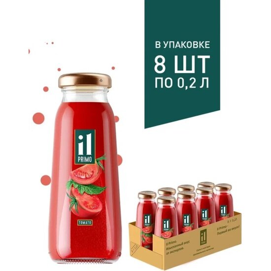 Купить Сок IL Primo томатный с солью с мякотью восстановленный 0,2 л (8 штук в упаковке)