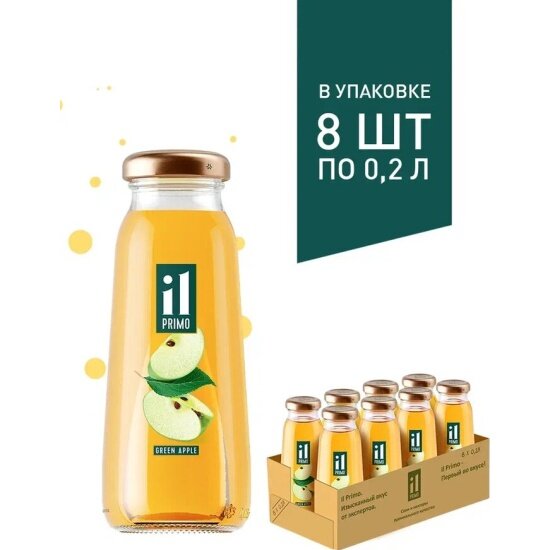 0,2л "IL PRIMO" сок яблочный из зеленых яблок осветленый восстановленый, стекло, спайка из 8 шт