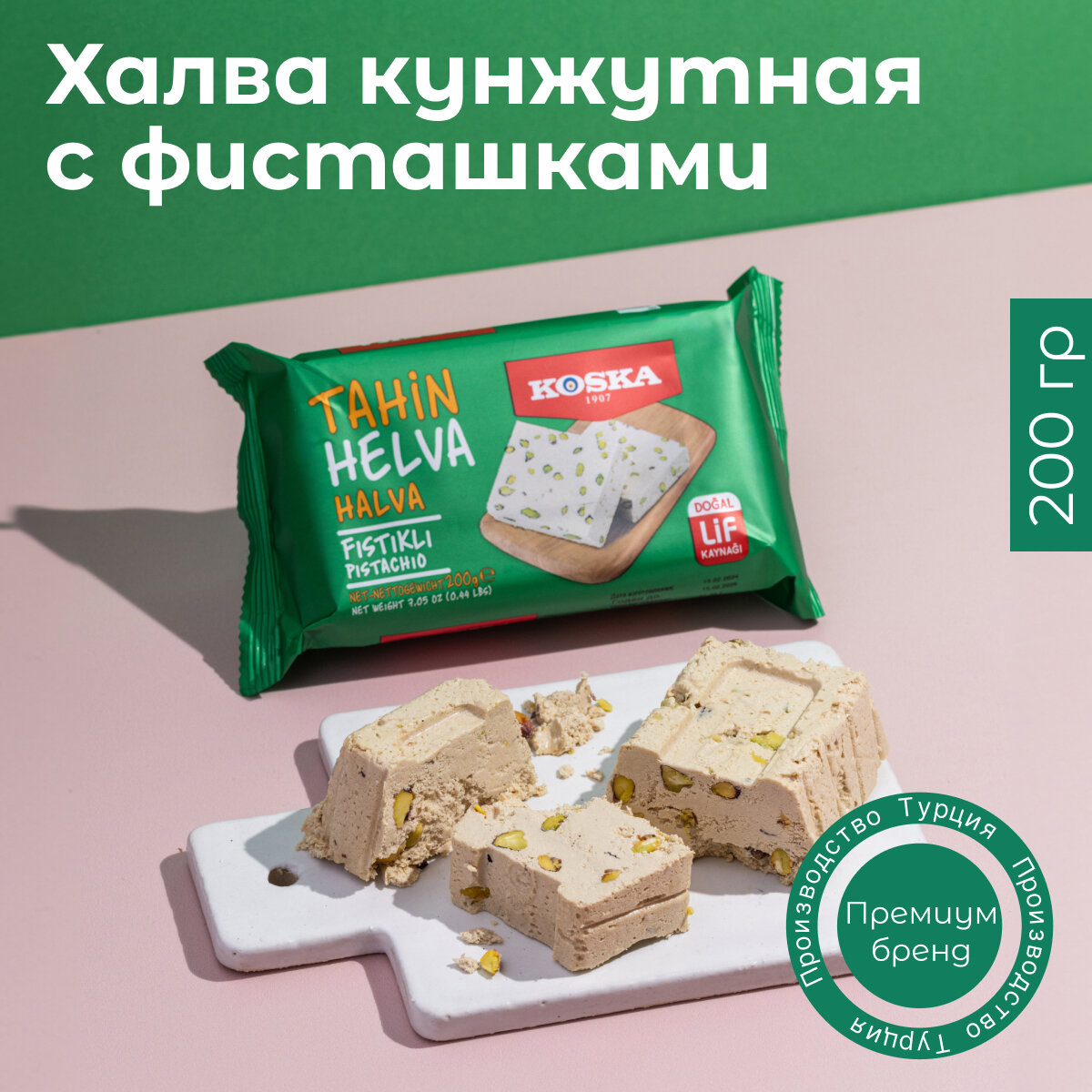 Кунжутная халва с фисташками Koska 200 г/безопасное примение/хороший состав/без аллергии