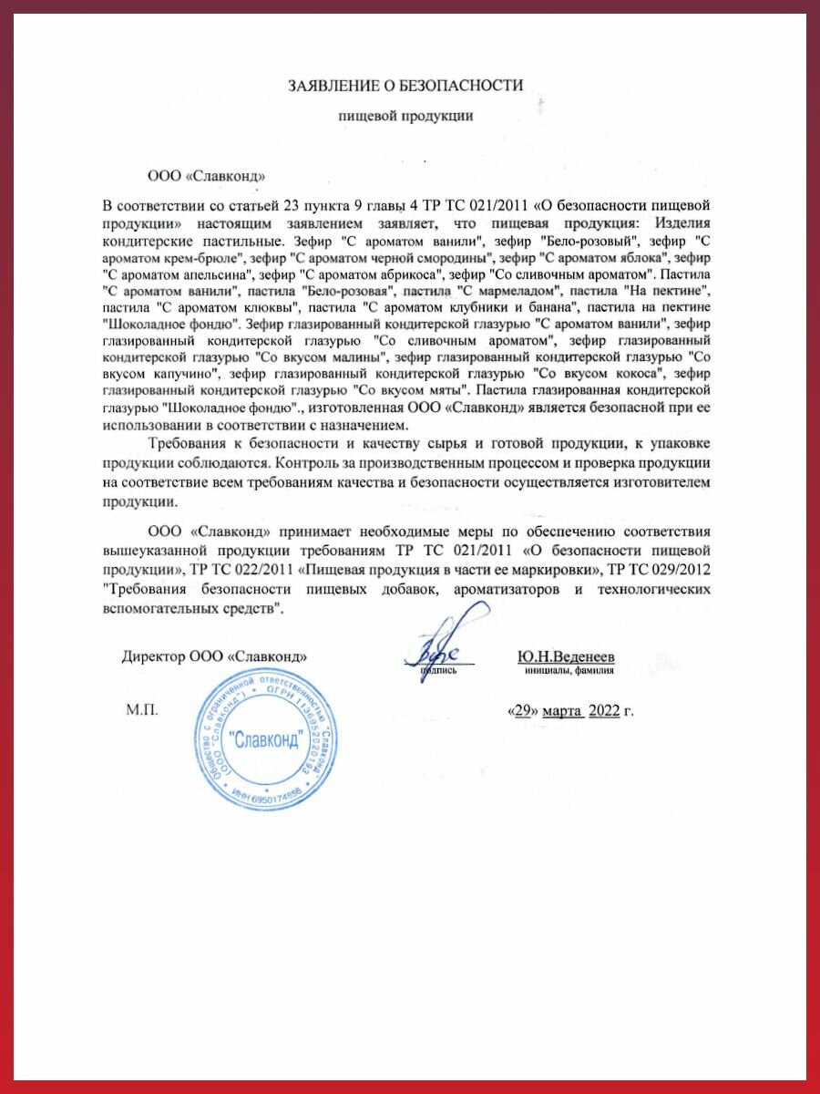 Натуральная пастила Ванильная в шоколаде 1,6 кг Славконд