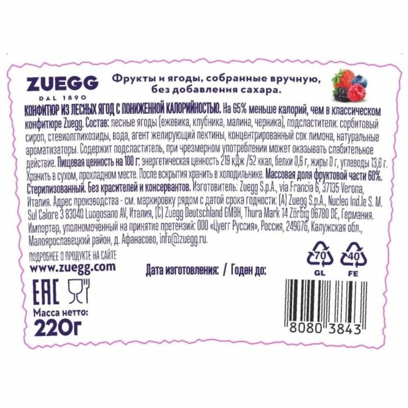 Купить Конфитюр Zuegg Лесные ягоды без сахара, банка, 220 г