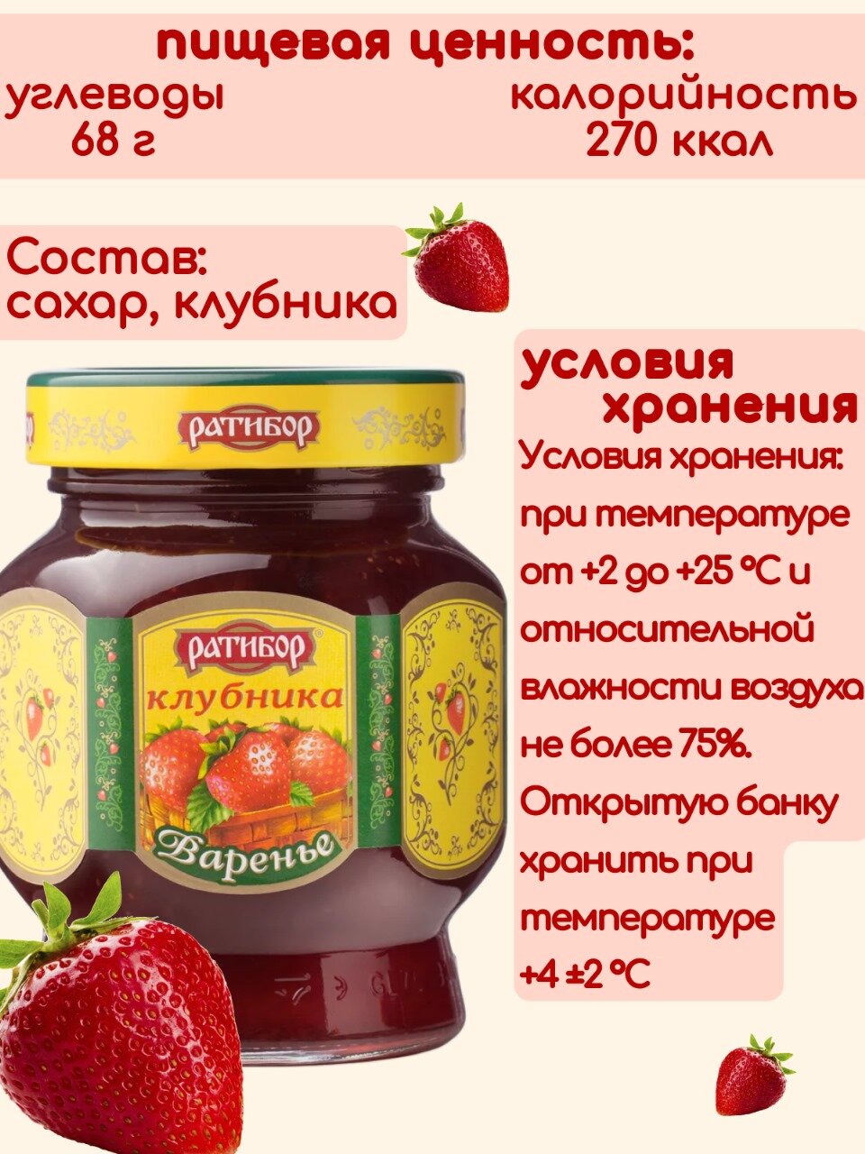 Варенье клубничное натуральное 360г Ратибор интересное: