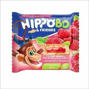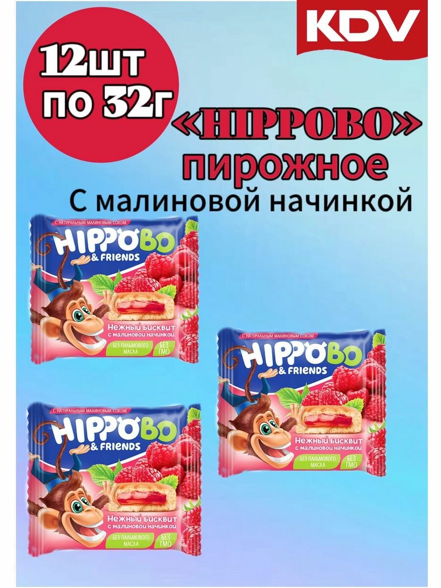 «HIPPO BONDI & FRIENDS», бисквитное пирожное с малиновой начинкой, 32 г (упаковка 12 шт.) интересное: