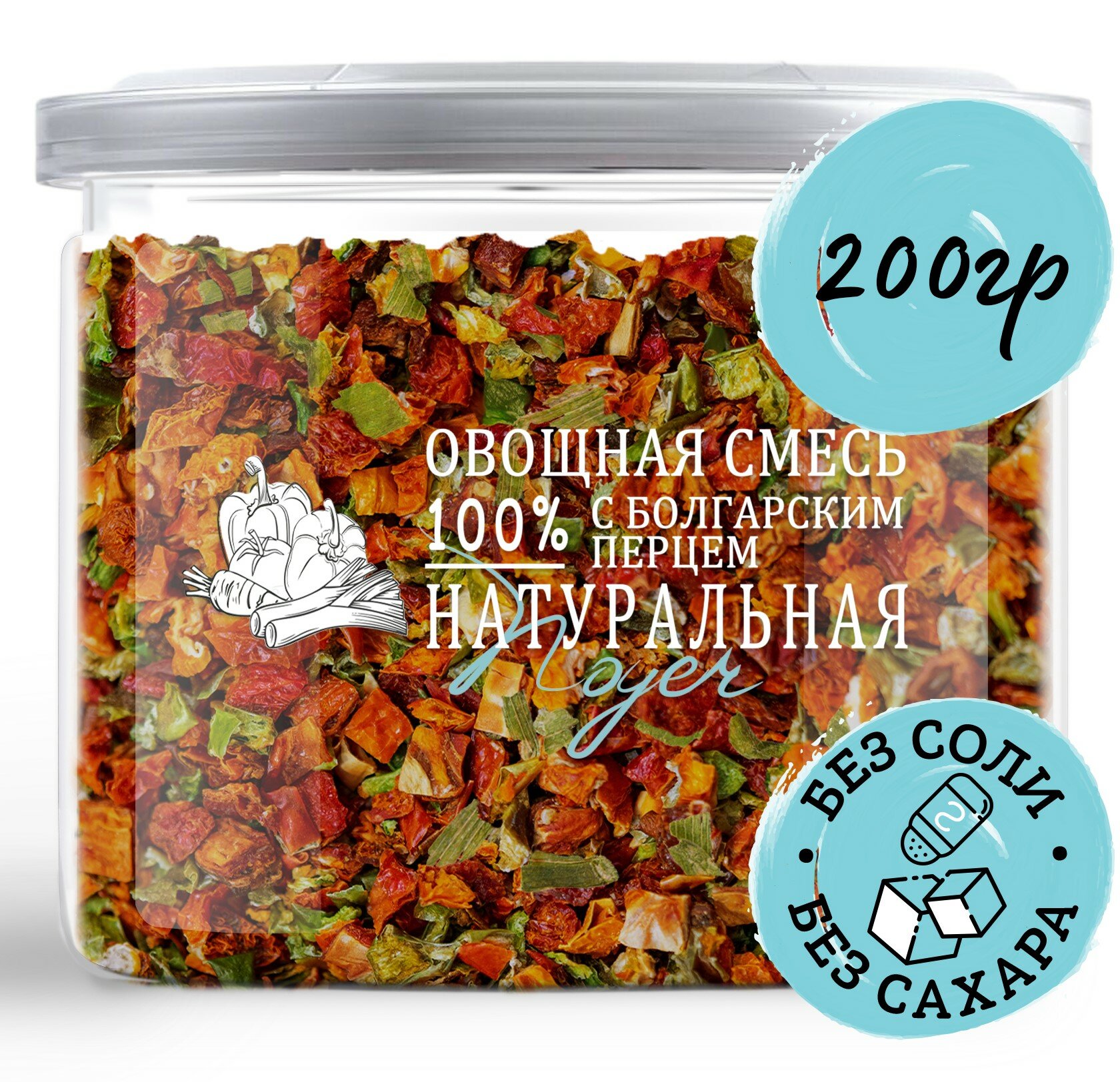 | Состав | Морковь, перец болгарский красный, перец болгарский зеленый, томат сушеный, лук порей. |