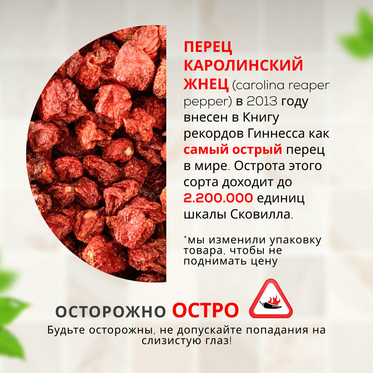 Самый острый перец в мире / Натуральный сушеный острый перец цельный Каролина Рипер / Carolina Reaper Pepper (5 грамма) интересное: